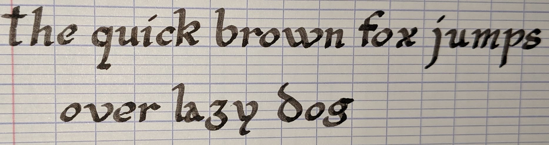Aside from that lowercase "a" that migrated a bit to the left my first attempt at Caroligian isnt too bad. I do love the look of the script.