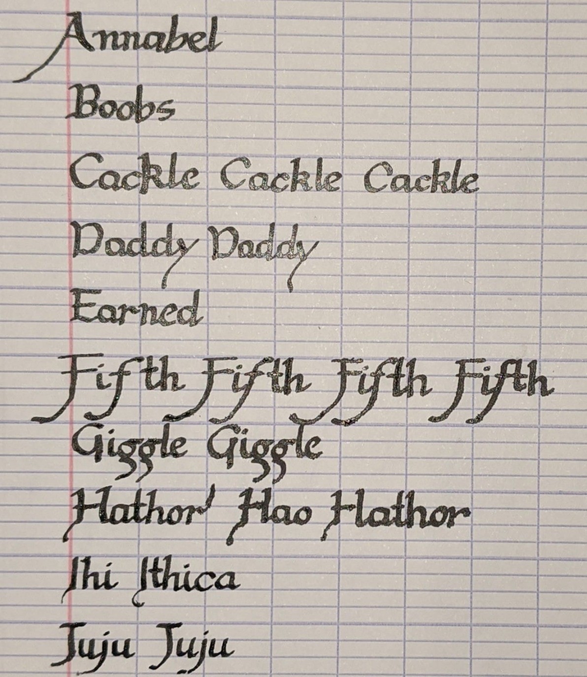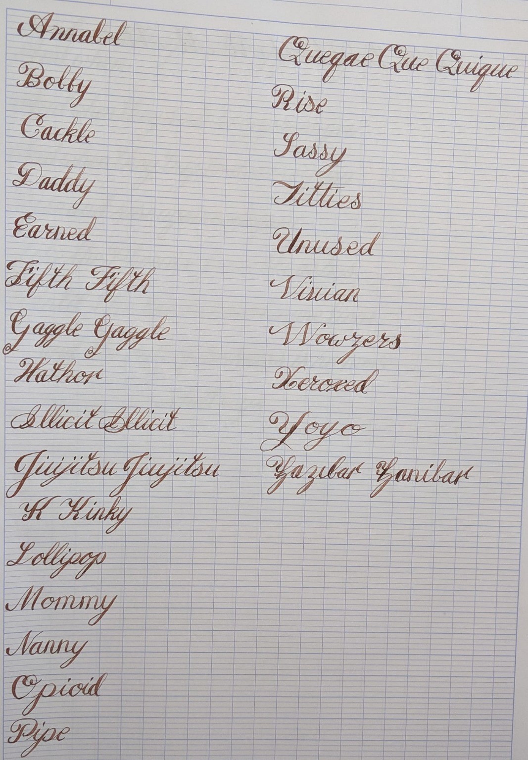I have a feel a psychologist would have a thing or two to say if they saw my self-written exemplar I use when practicing my Copper plate script...
