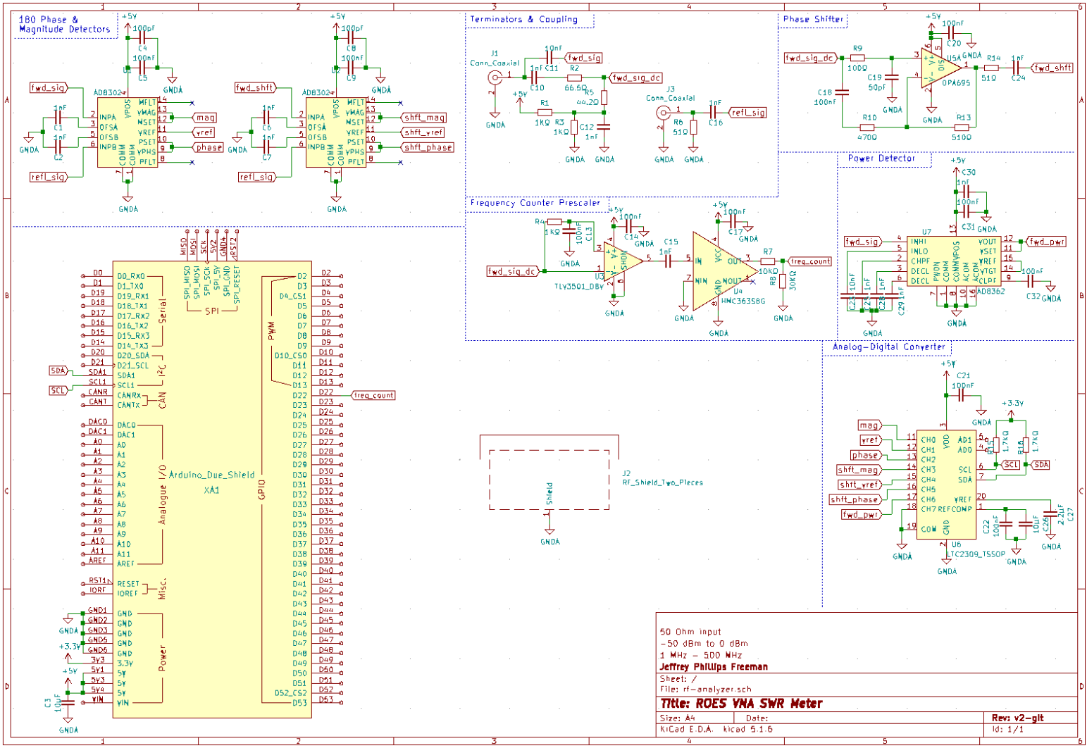 For those following along I have made some minor corrections to the V2 schematic for my "Ridiculously Over Engineered SWR Meter". Attached is the new schematic.