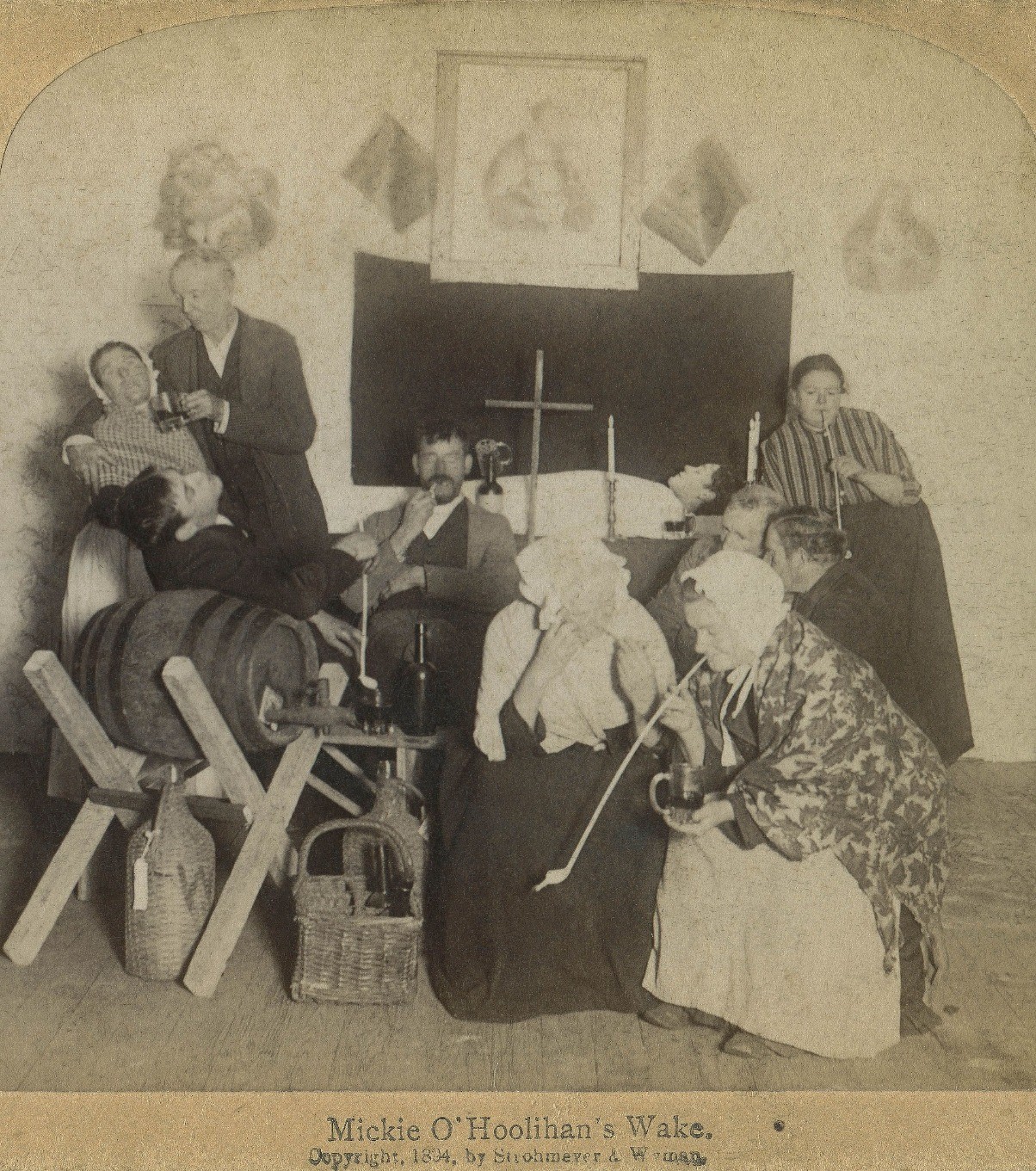 @stux A quick search I found this old Irish picture of a wake back when staying awake to watch over the body until it was buried was still a thing.