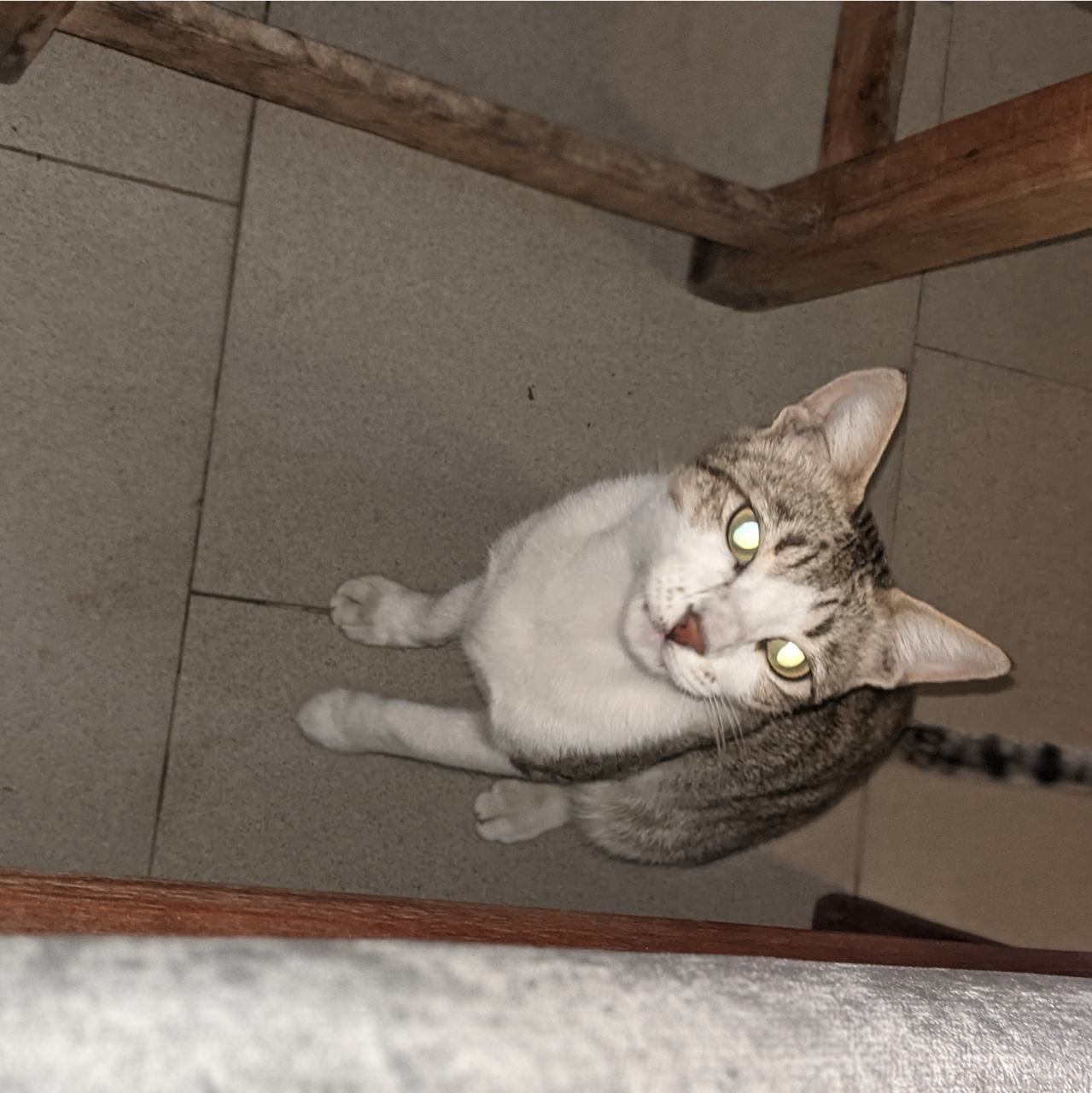 I made another cat friend today. I shared my calamari with him but he was still hungry so I got the restaurant to make him some plain grilled chicken. By the time the chicken came my cat friend was gone but the restaurant staff tracked him down around the corner and gave him the meal i bought him. My cat friend should now have a stomach full of calamari and chicken.