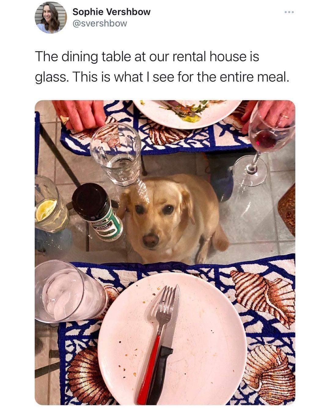 Imagine the illusion of balancing a wine glass on the doggies head! Or tricking it into licking the underside of the table!! Talk about a meal and entertainment!!