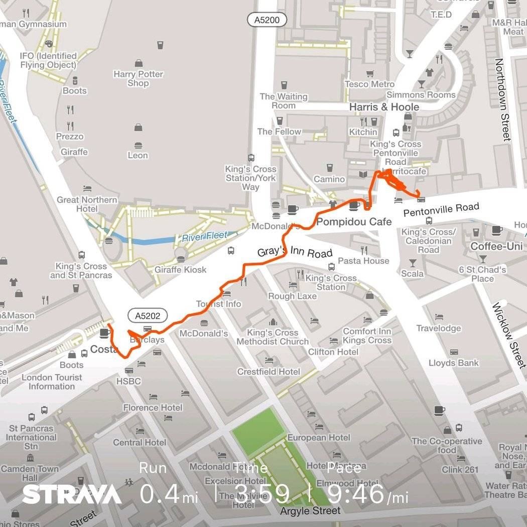 I got in pretty late and I was tired, so only did a half mile walk to a pie shop (not what Strava was intended for lol). But figured I'd share anyway. I walked about 10 miles total today though so I'll take it. -- October 5 at 1:07 AM
