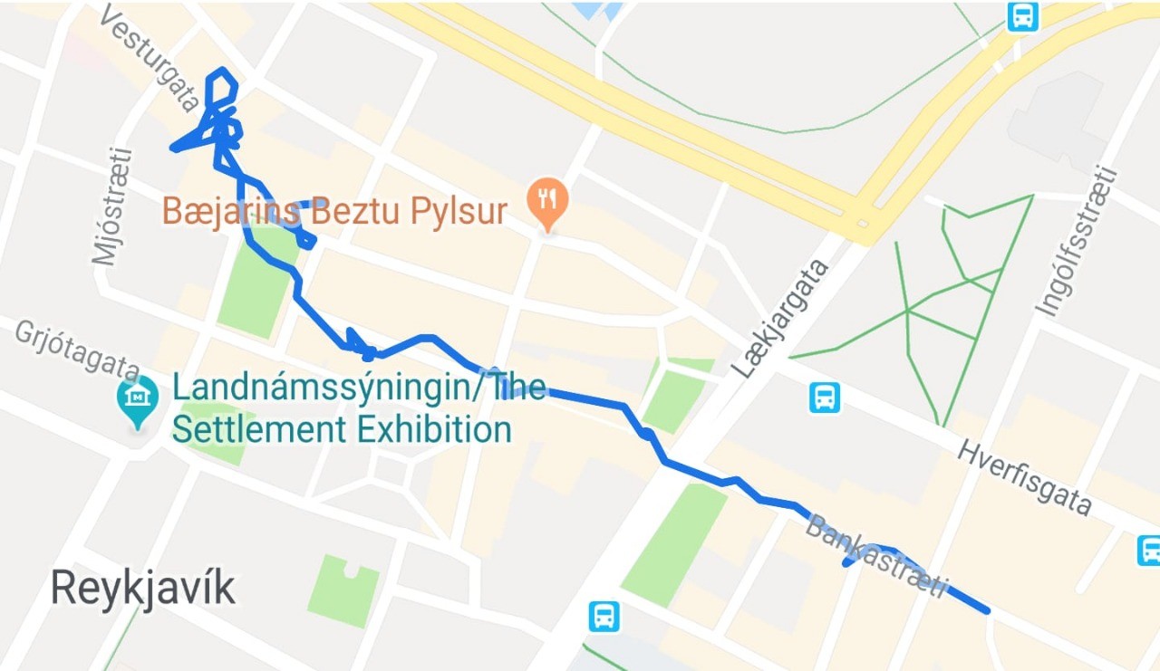 My walk through Reykjavik. Sadly most of the hike was lost as my phone died half way through. Was about 3 miles total. -- October 6 at 2:57 AM