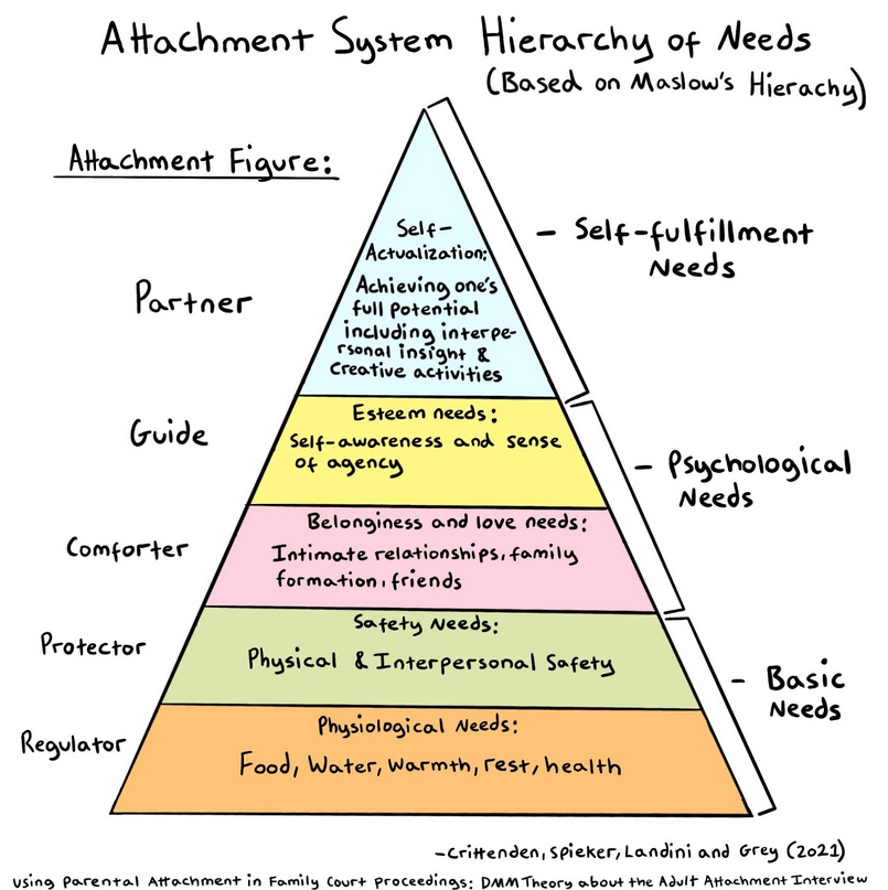 Human Attachment systems meets Maslow's Hierarchy of Needs. Each stage has a corresponding attachment figure. Interesting.