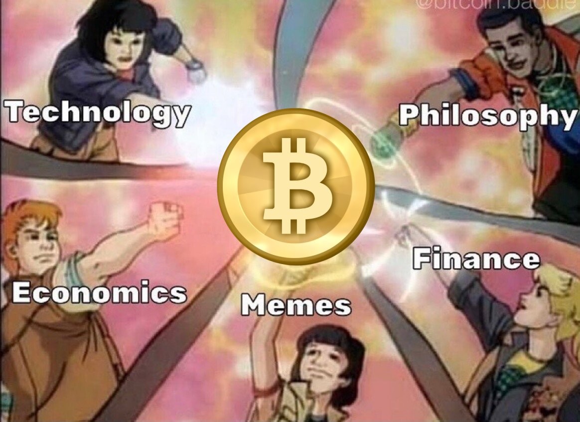 Picture reads: Technology, Philosophy, Economics, Finance, Memes (Bitcoin)