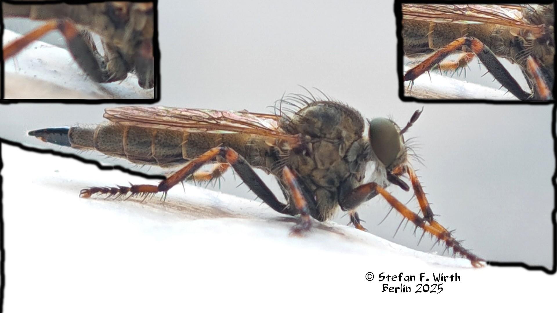 Some #insects support passive #breathing via tracheae through #active #respiratorymovements, nsmed #convectiveventilation. Muscle contractions cause motions that e.g. dilate the #spiracles, allowing more efficient #gasexchange. The same time, the process also serves #thermoregulation. My example, the #robberfly #Tolmerus #cingulatus, demonstrates this #behavior.