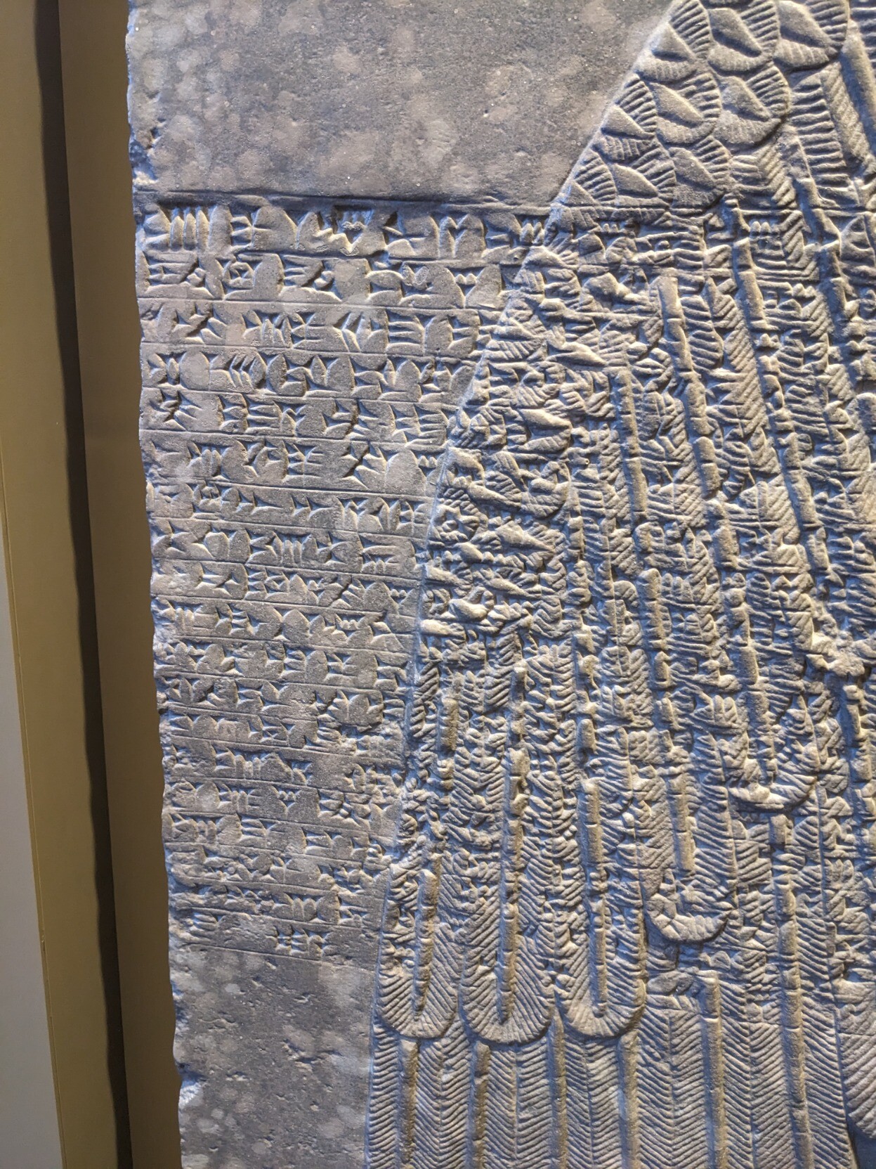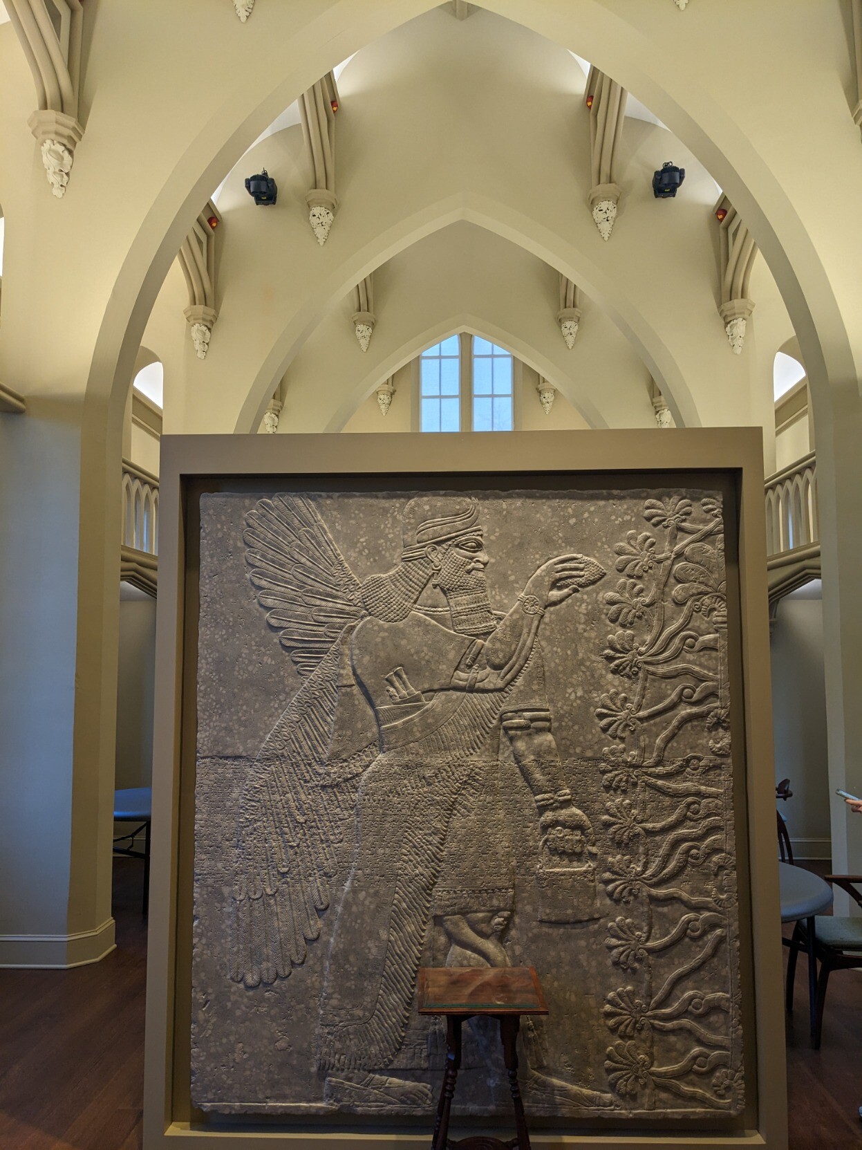 Virginia theological seminary 的Ashurnasirpal II浮雕。Nimrud (Kalhu, biblical Calah) 建于中亚述时期,在公元前九世纪成为新亚述帝国的首都,Ashurnasirpal 在此建造了宏伟的宫殿,是当时世界上最大的城市。城市在前七世纪随着亚述帝国的灭亡而毁灭。19世纪中叶英国考古队对Nimrud 进行第一次挖掘,这块宫殿墙上的浮雕即于此时获得。20世纪中叶Agatha Christie的丈夫在此主导第二次挖掘。2015年ISIS用推土机彻底摧毁Nimrud遗址,这些散落在西方各大博物馆里的浮雕和塑像便成了新亚述辉煌首都在世界上唯一的印记。