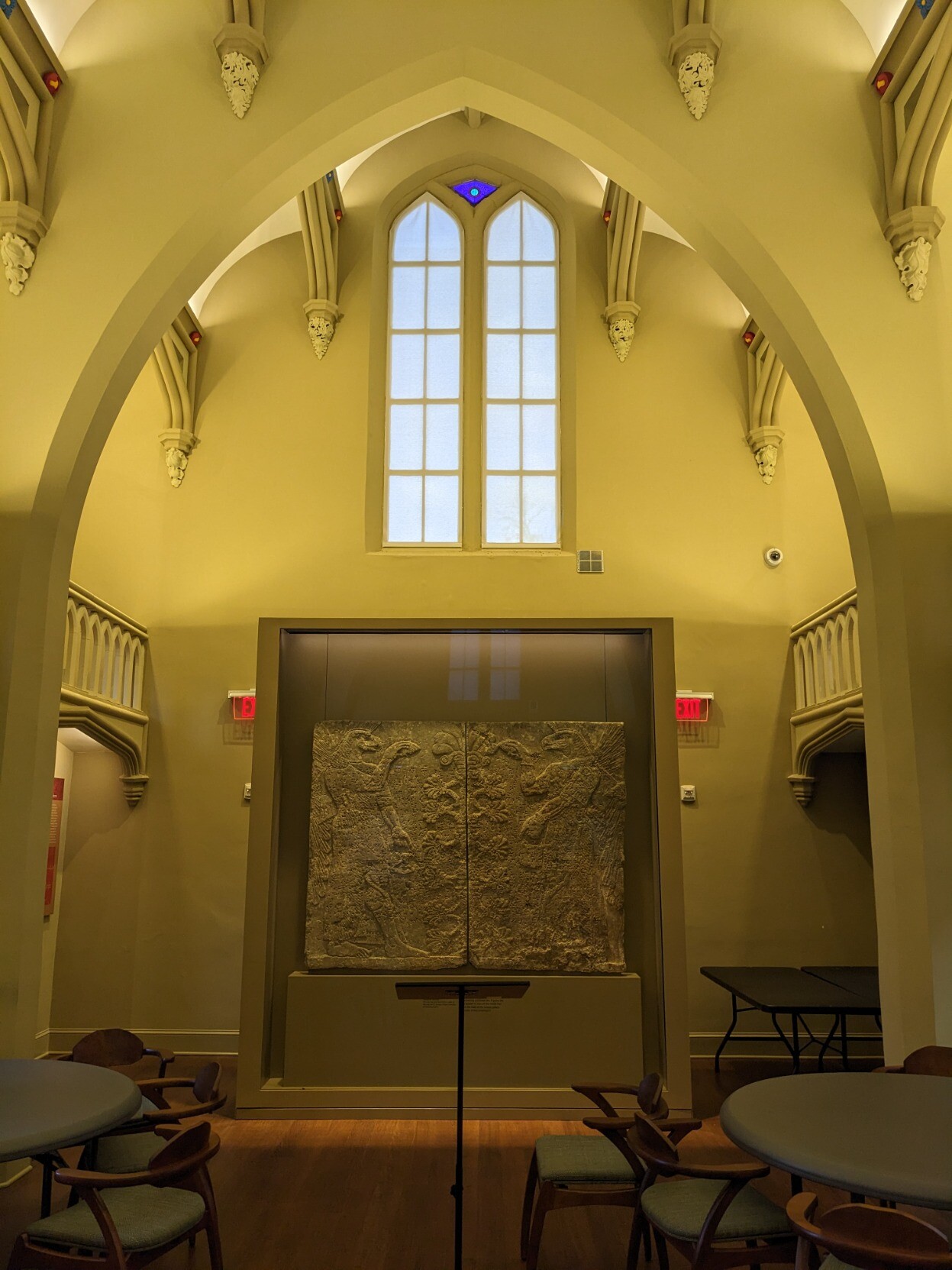 神学院原本购得三块浮雕,其中一块2018年于佳士得出售,为神学院的二百周年奖学金提供资金。目前在神学院中展出的是剩下两块成对的浮雕原件,以及售出那块的复制品。浮雕位于bicentennial hall, 神学院在DC郊区,工作日对公众开放(窝怀疑周末可能也开放,因为根本无人看管,本校学生也不知道浮雕在哪(。