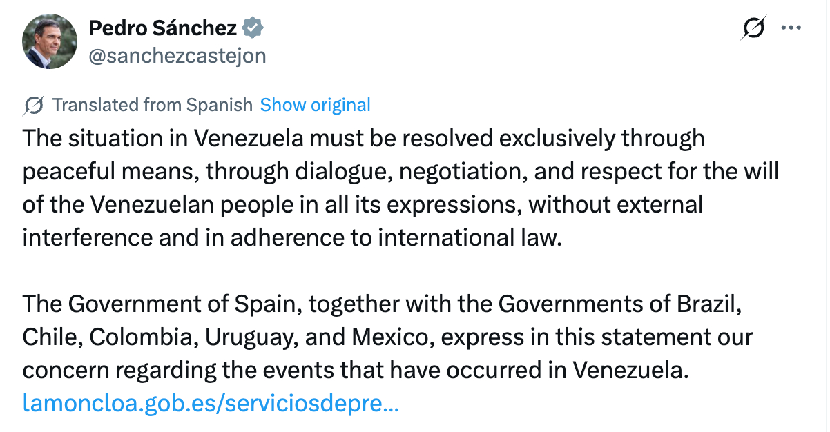 Es interesante ver como todos los partidos nacionalistas (sean de derechas o de izquierdas) condenan de la forma más clara posible lo de Venezuela.