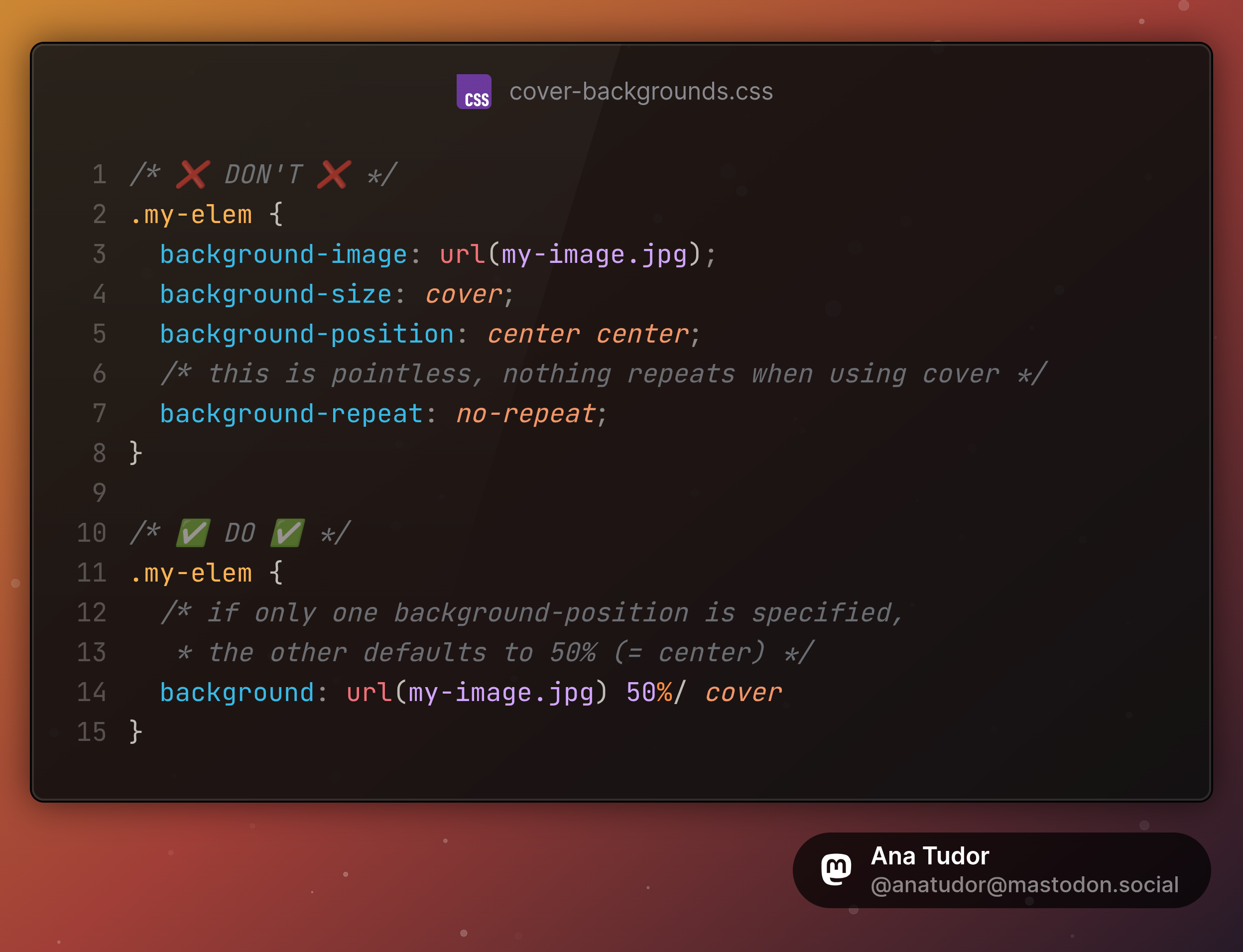 Because I often see this and it's a major #CSS pet peeve of mine, makes me want to scream "do you even understand what `cover` does?" at the screen every time...