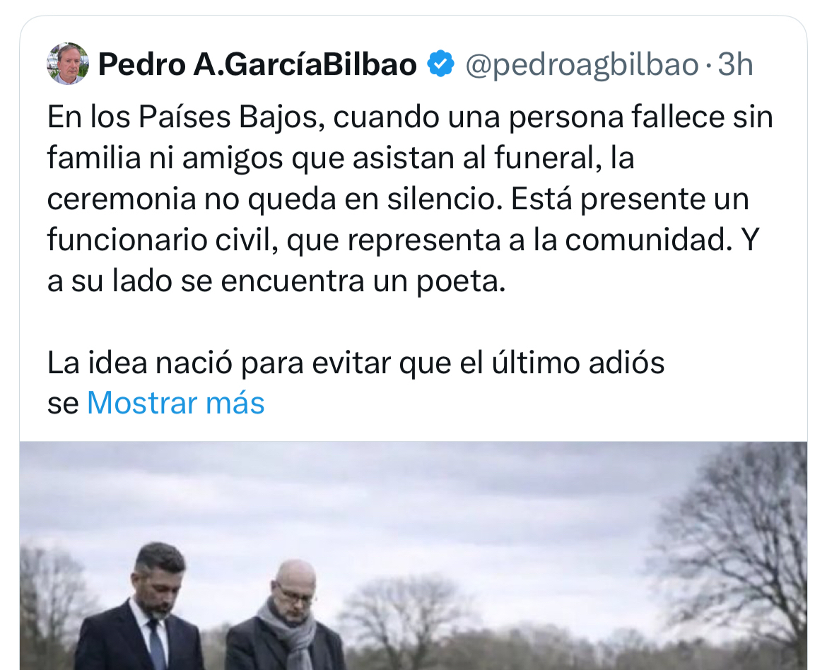 Lo terrible es que alguien sea enterrado sin la presencia de familiares o amigos, en absoluta soledad, de la misma forma en que vivió. Es el epítome de una sociedad individualista en la que se rompen los lazos comunitarios, sociales y emocionales. Es antihumano.