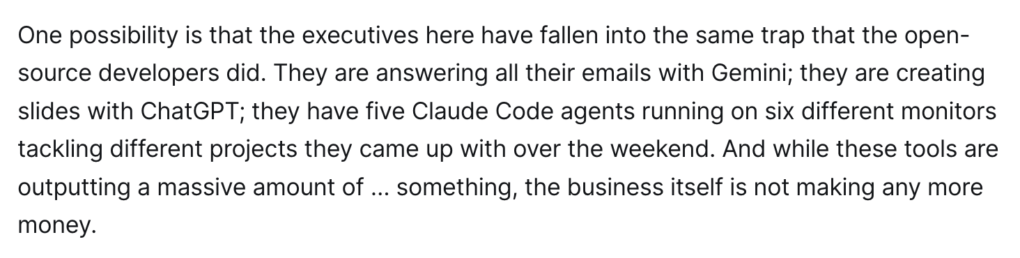 A survey found that two-thirds of employees say AI saved them zero to two hours a week, while it saved their bosses eight hours. What gives? platformer.news/ai-productivit
