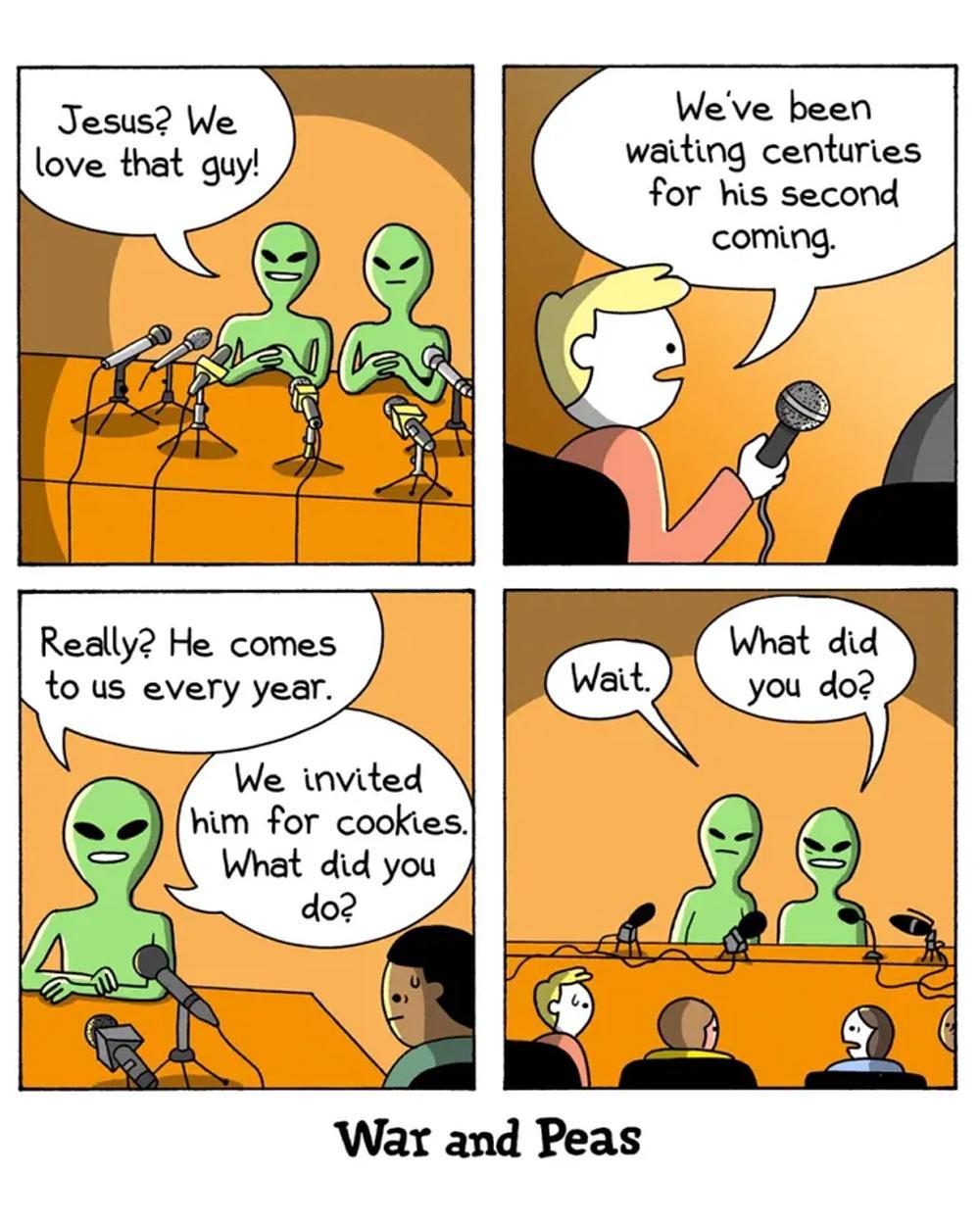 In honour of the day you all did those despicable things to Jesus I am posting my favourite @warandpeas comic