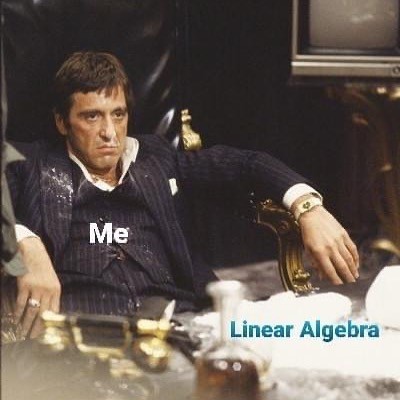 Aww. Linear algebra is pretty great once you get used to it. Vector spaces are basically just polynomials you don't multiply. You can cheese many algs with it.