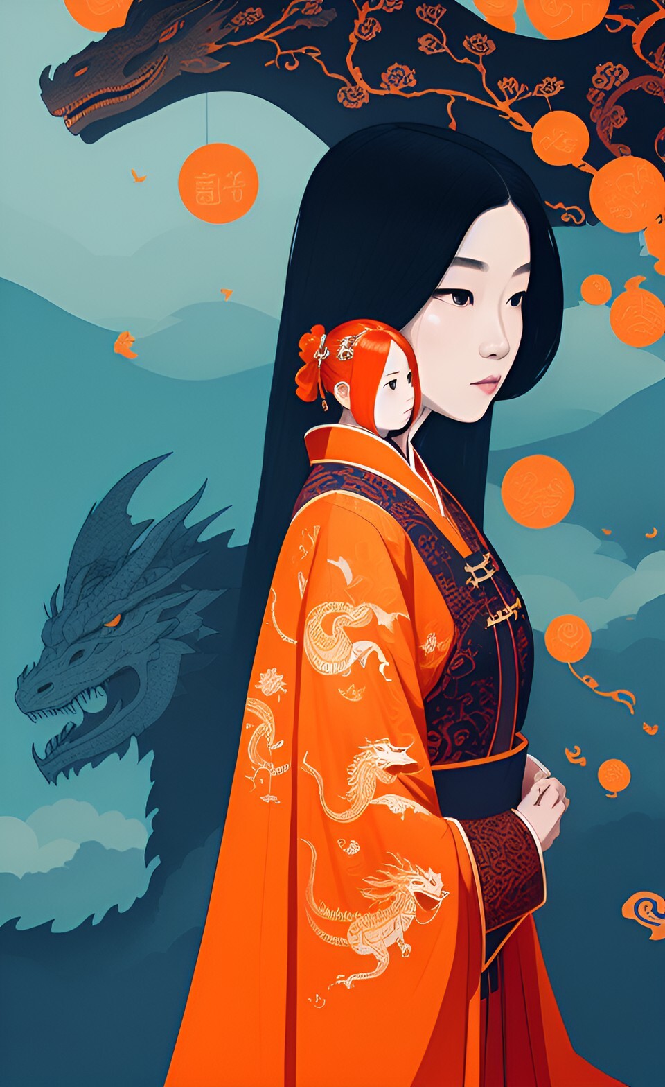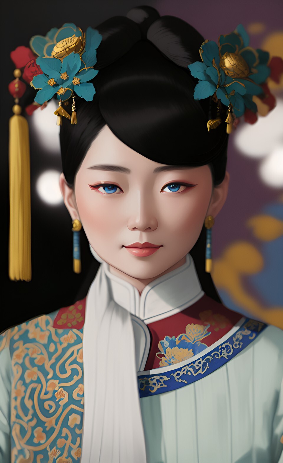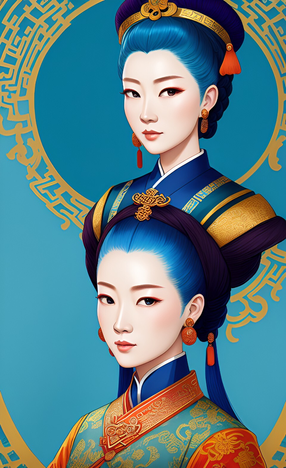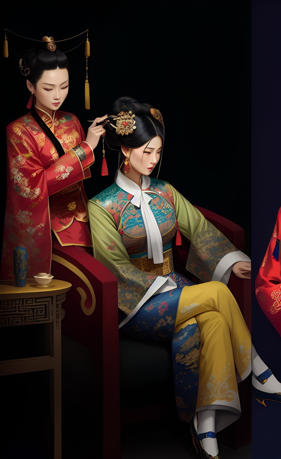 Есть такая прическа 二把頭(Вообще, у этой прически еще несколько названий есть, но я как-то забыла про это и использовала то, что помнила) 二 - это два. Поэтому нейросеть решила, что мне нужны две девушки. Даже поправка "одна девушка" сработала ну не очень.