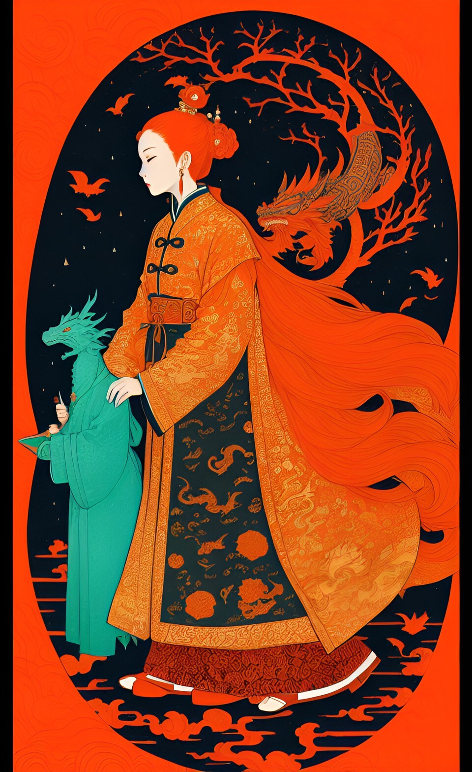 А еще она очень интересно считывает названия одежды (опять же эпохи Цин). 龍袍 — она считывает не как императорскую одежду, а раскладывает на "одежда" и "дракон". Поэтому что-то прям Цинское не вышло, зато везде драконы, а на 4 картинке этот дракон вообще как ребенок вышел, у него ручки-ножки есть и все такое.