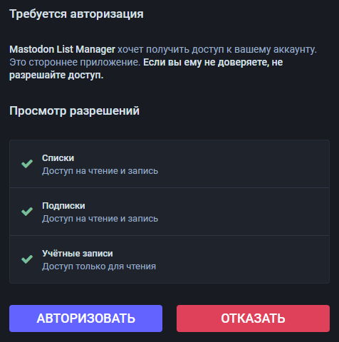 Т.е. рулить списками и подписками оно может, читать посты — не должно. (Но это не точно).