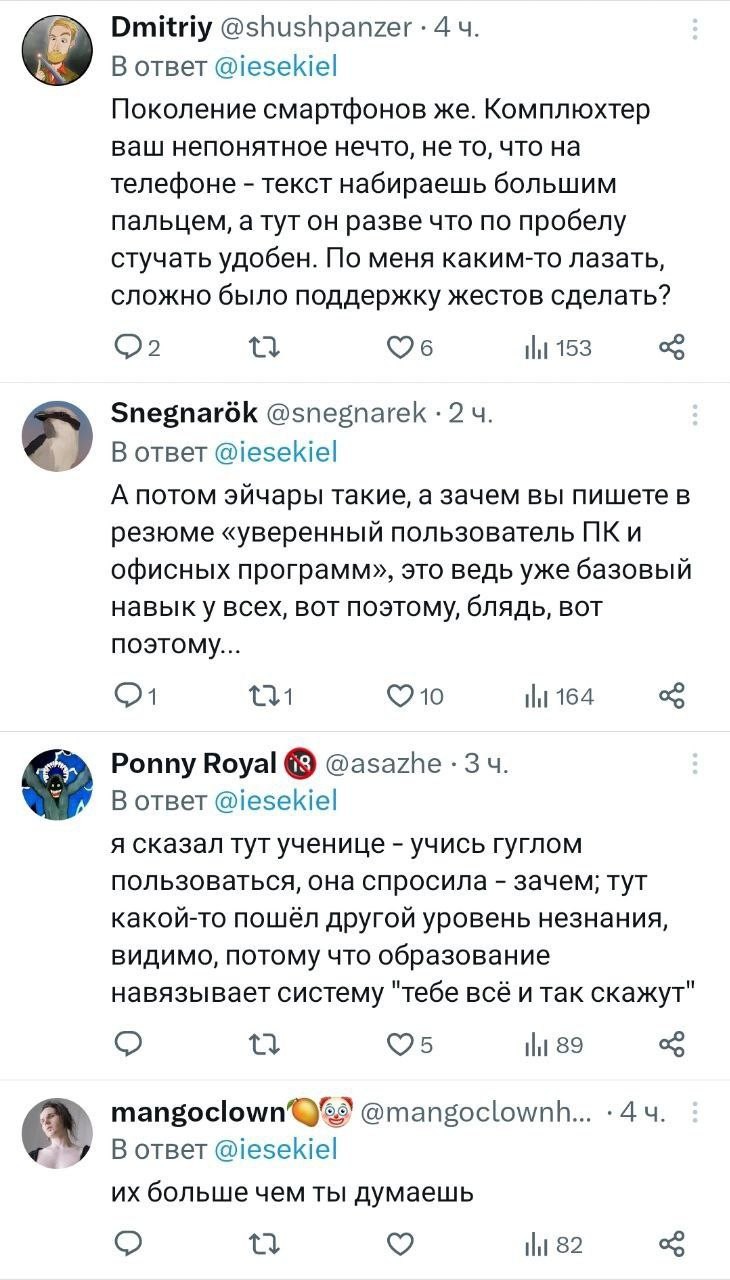 Я вчера удивлялся тому, что современные дети не умеют в комп и сегодня читаю как Абу тоже жалуется на это. t.me/abuwtf/12310