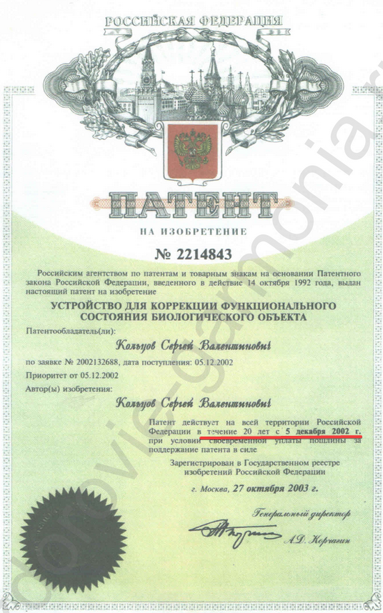 Все они подтверждены Патентами на изобретение. КФС Кольцова легко пользоваться. Он имеет удобную форму пластины и компактные размеры, поэтому его можно постоянно носить на себе. КФС Кольцова сертифицирован, имеет санитарно-эпидемиологическое заключение и регистрационное удостоверение. Срок действия КФС Кольцова не ограничен, им можно пользоваться всей семьёй длительное время.