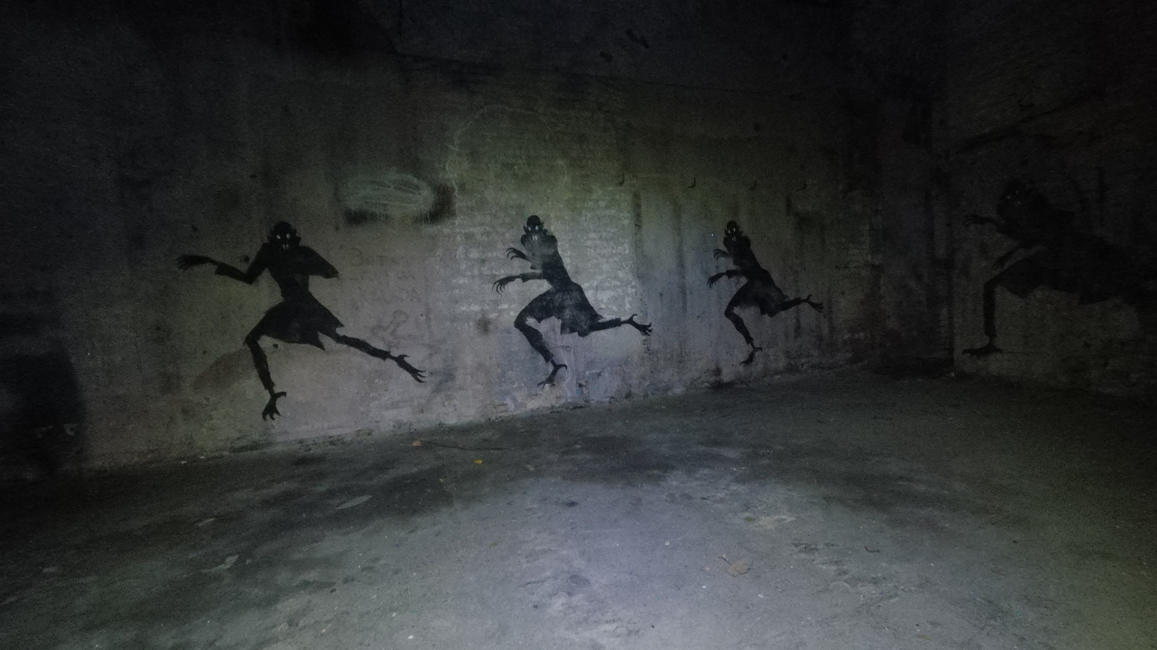 В пороховом погребе, что на Лисьем носу, кто-то искусно намалевал танцующего Носферату, так что он в безумной пляске будет преследовать вас почти в каждом помещении.