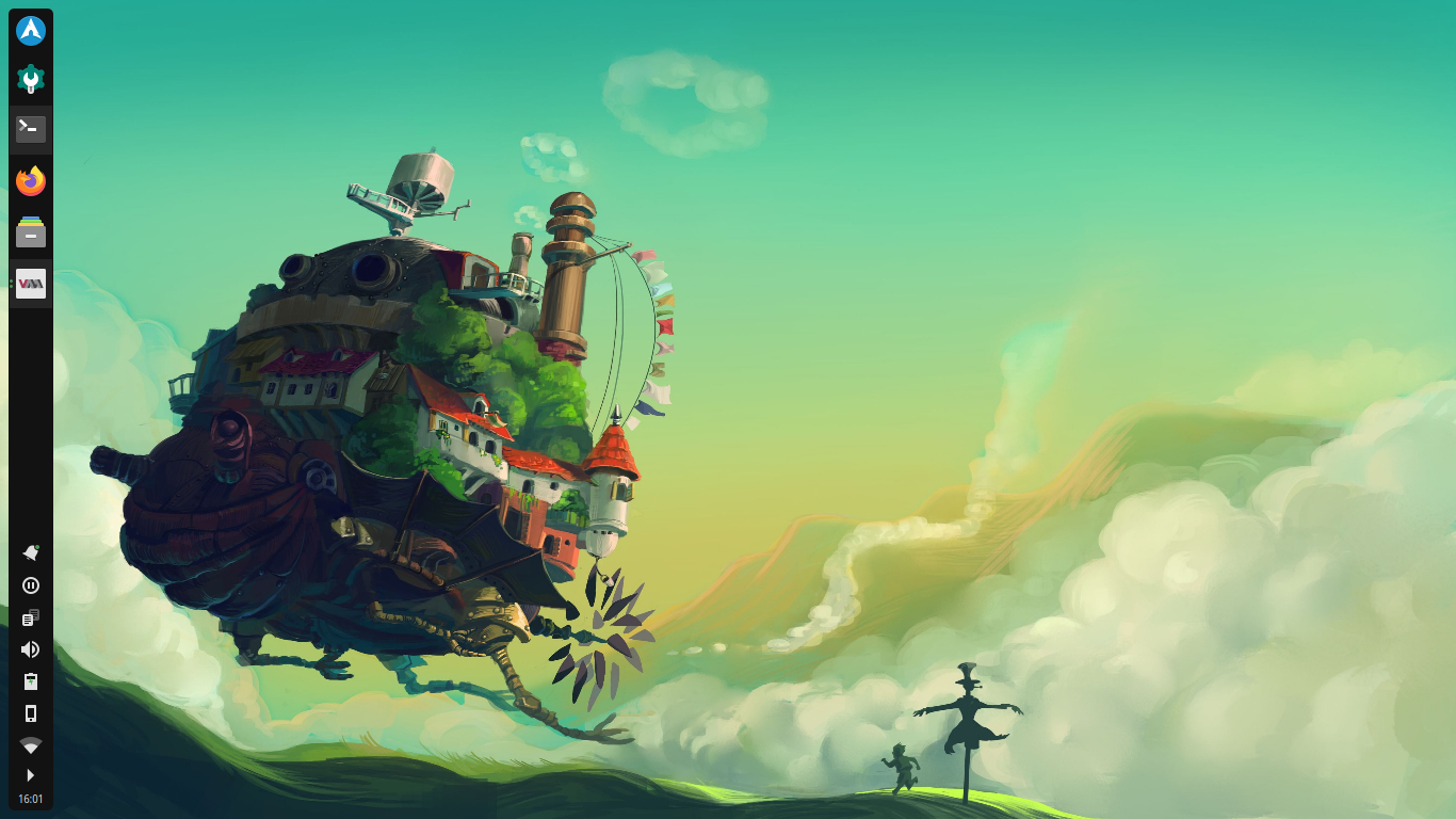 Hola a todos este es mi #ViernesdeEscritorio con retraso del año mi #ArchLinux con#KDEPlasma y un wallpaper creo que tipo estudio gibhli por que creo que lo que hay en el wallpaper es de una de sus peliculas bueno aqui va la imagen