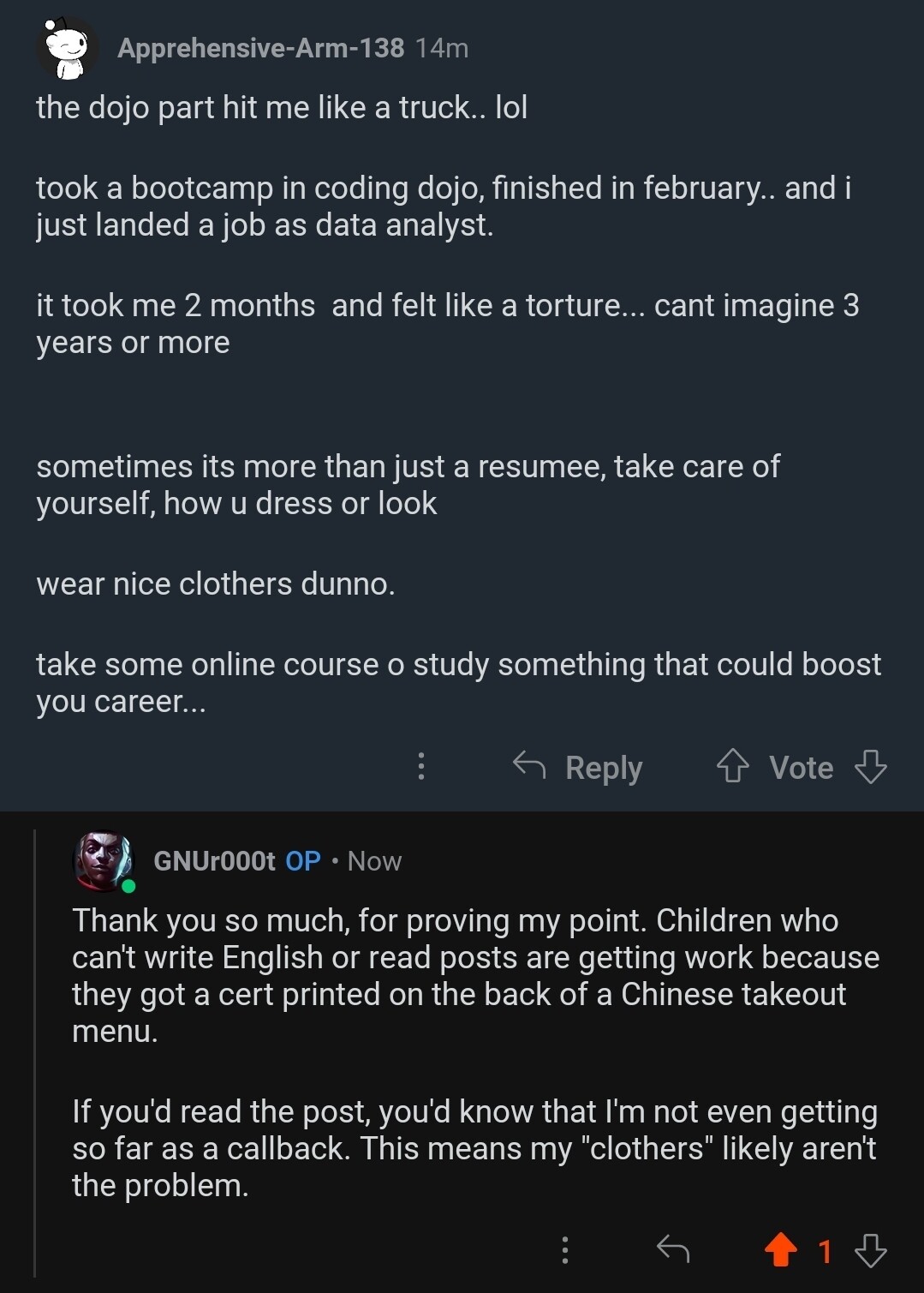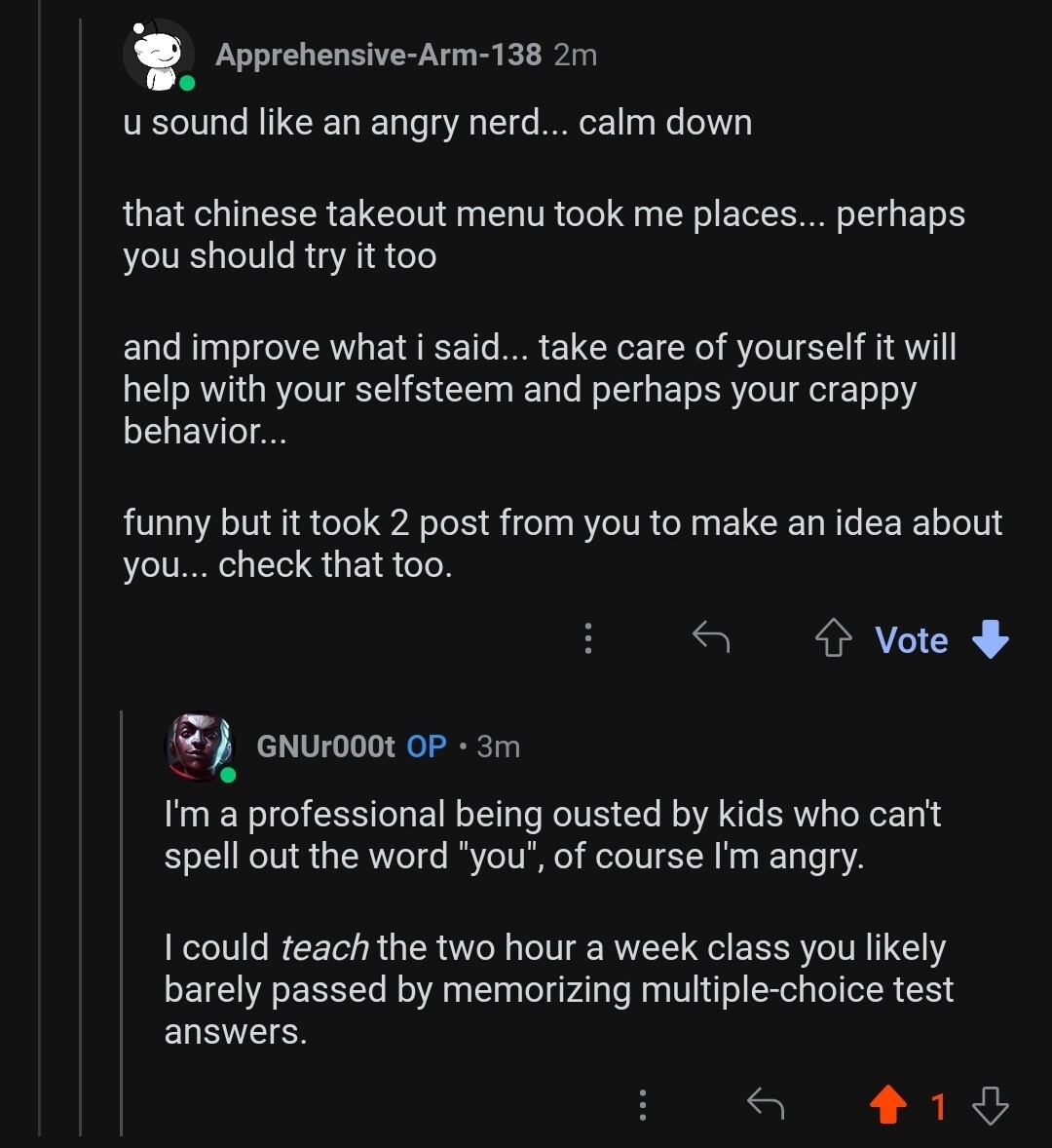 This person came at me with personal attacks. I responded in turn.