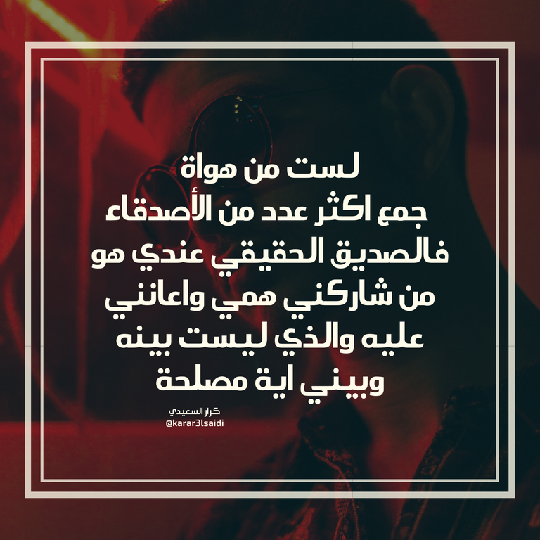 لست من هواة جمع اكثر عدد من #الأصدقاءفالصديق الحقيقي عندي هو من شاركني همي واعانني عليه والذي ليست بينه وبيني اية مصلحة كرار السعيدي