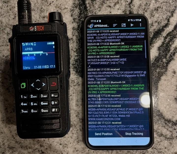 Btech UV-PRO со встроенным Bluetooth TNC в паре с андроид-устройством под управлением aprsdroid