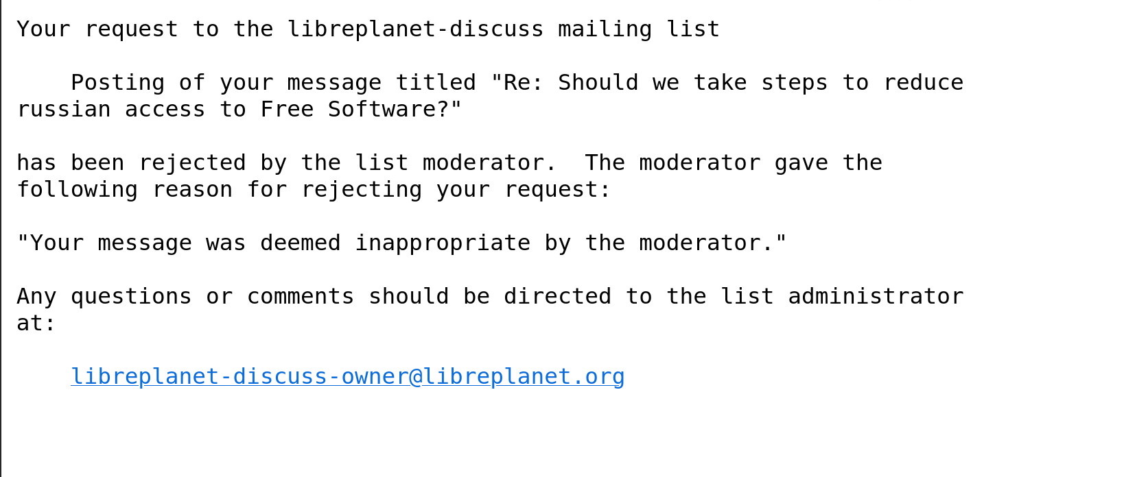 @fsf censored me for raising ethical questions surrounding the use of Free Software in Russian Military