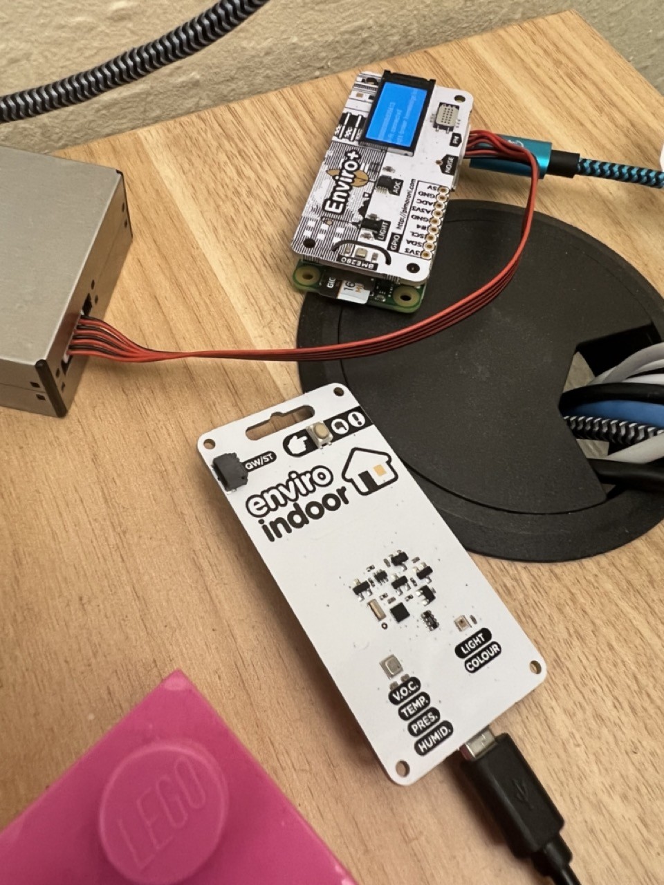 @kreyren oh, the other one (top right) is a Raspberry Pi Zero W with a board on top that also has air quality sensors. The Pico is running MicroPython, the Pi is running Python.