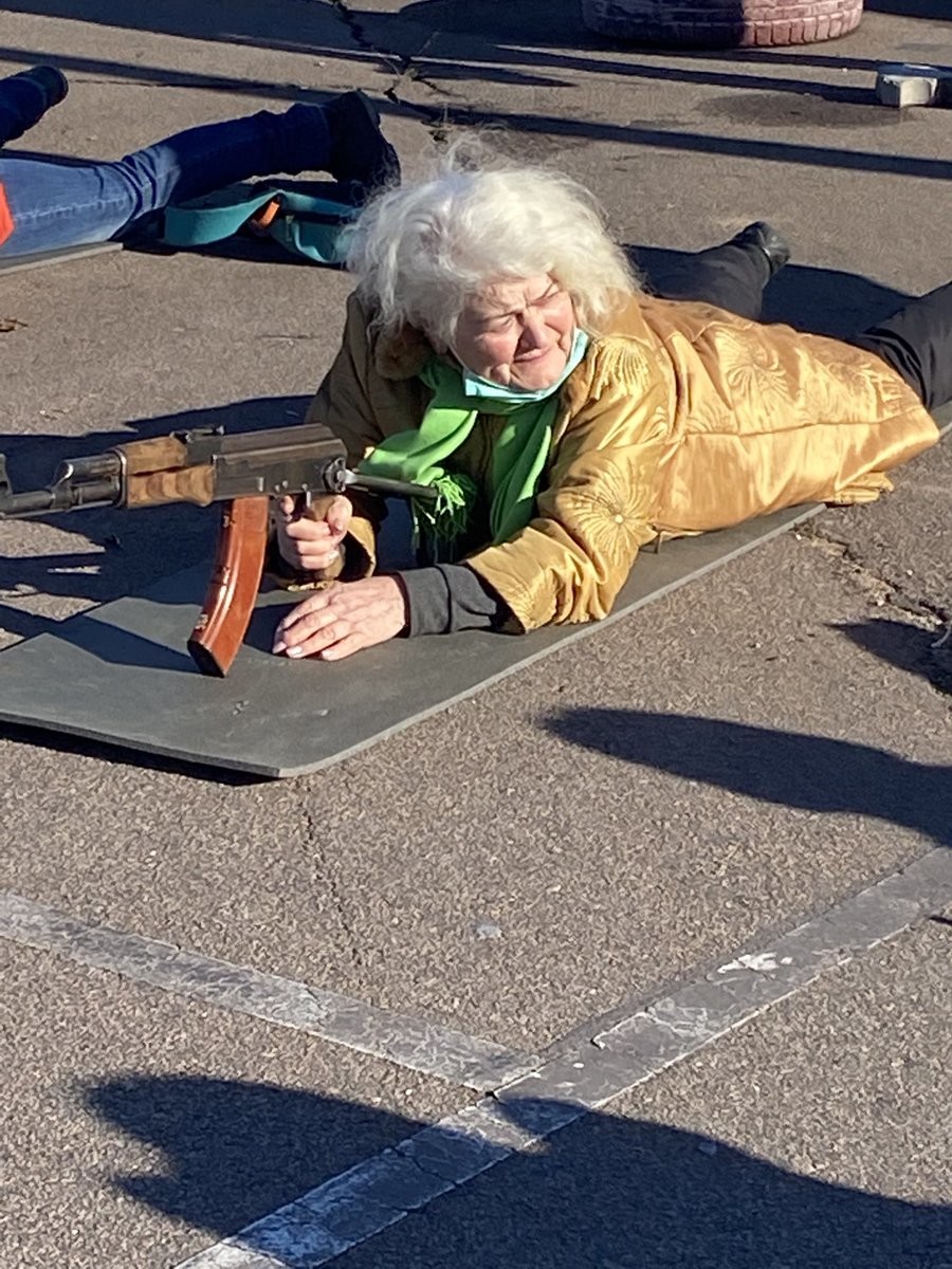 In the face of a potential invasion from Russia, Ukrainian women of all ages have begun training to defend Ukraine. Pictured below is a "Great Grandmother", Valentina Constantinovska. The other, Mariana Zhaglo, is a 52-year-old market researcher in Kiev.