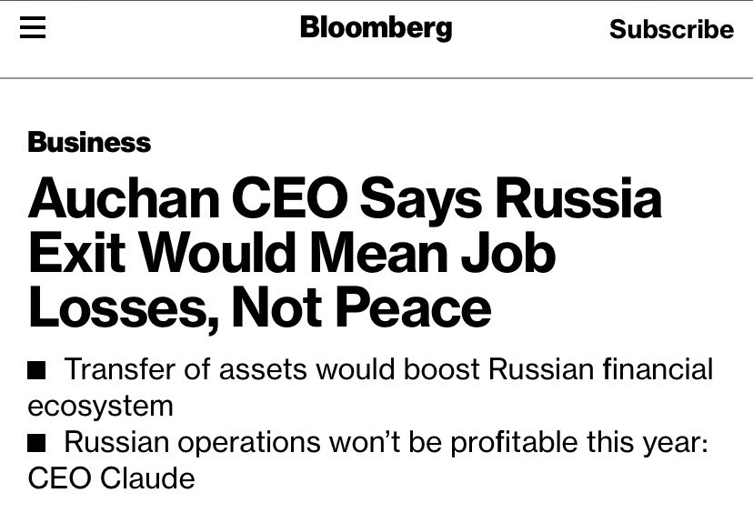 Apparently, job losses in Russia are more important than the loss of life in Ukraine. If Auchan ignores 139 Ukrainian children murdered during this month of Russian invasion, let us ignore Auchan and all their products. Boycott @AUCHAN_France @alcampo @leroymerlinfr @Decathlon