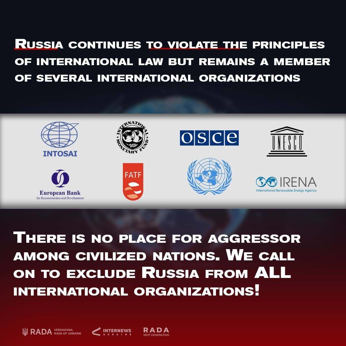 ❗We call on to exclude Russia from ALL international organizations❗
