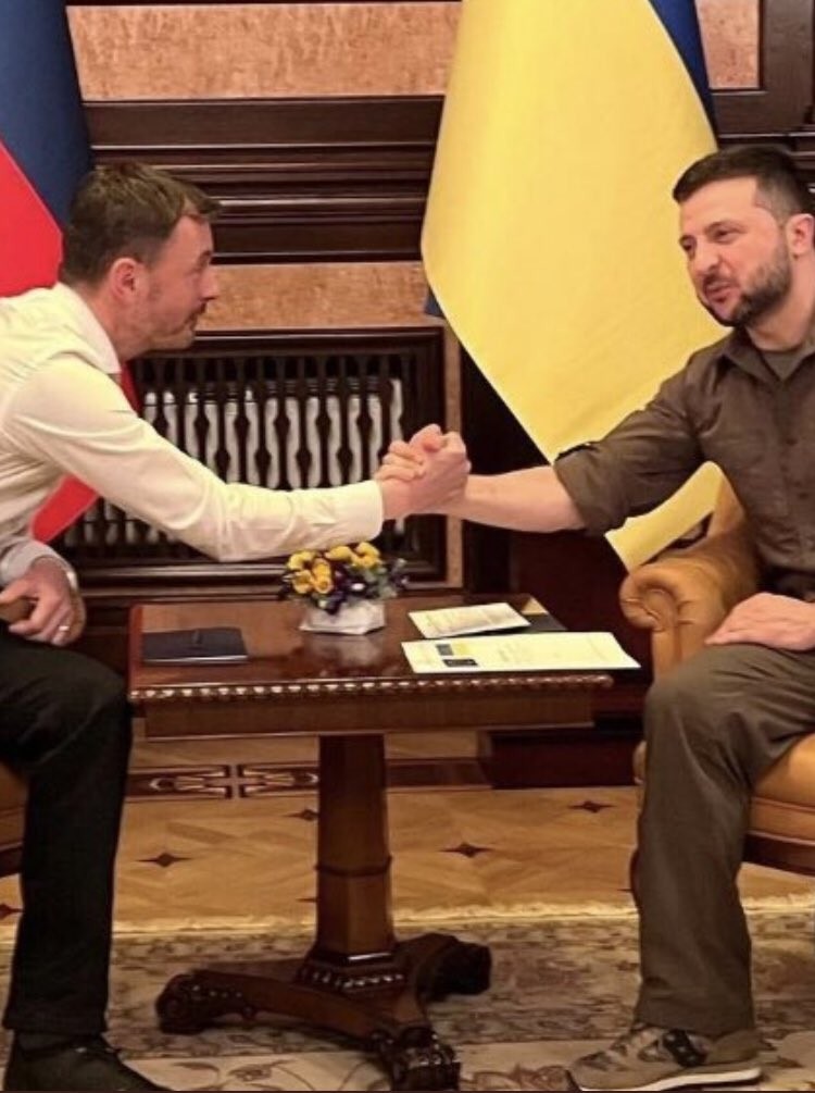 Chtěl bych poděkovat českým novinářům, kteří informují o válce v Ukrajině bezprostředně z terénu. Dělají to často s rizikem vlastního života. Zaslouží si proto naší velkou úctu a obdiv.
