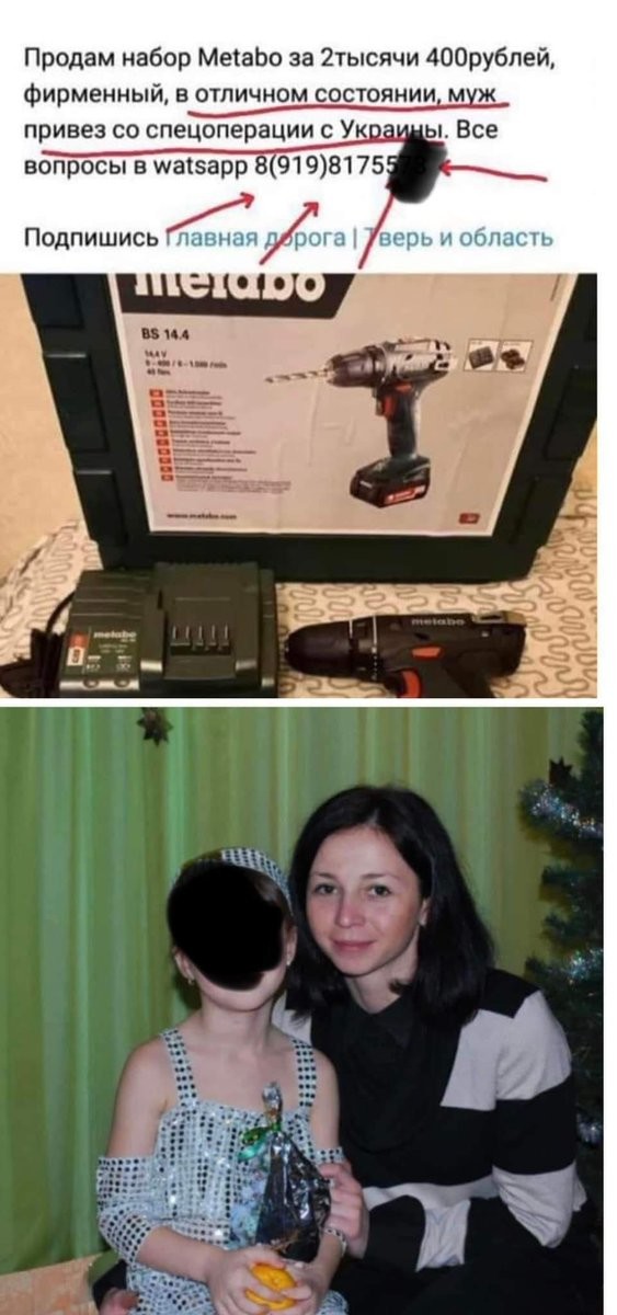 “An electro drill set in a perfect condition! My husband has brought it home from a special operation in Ukraine” - a Russian wife of a Russian soldier proudly sells looted goods on Russian internet.