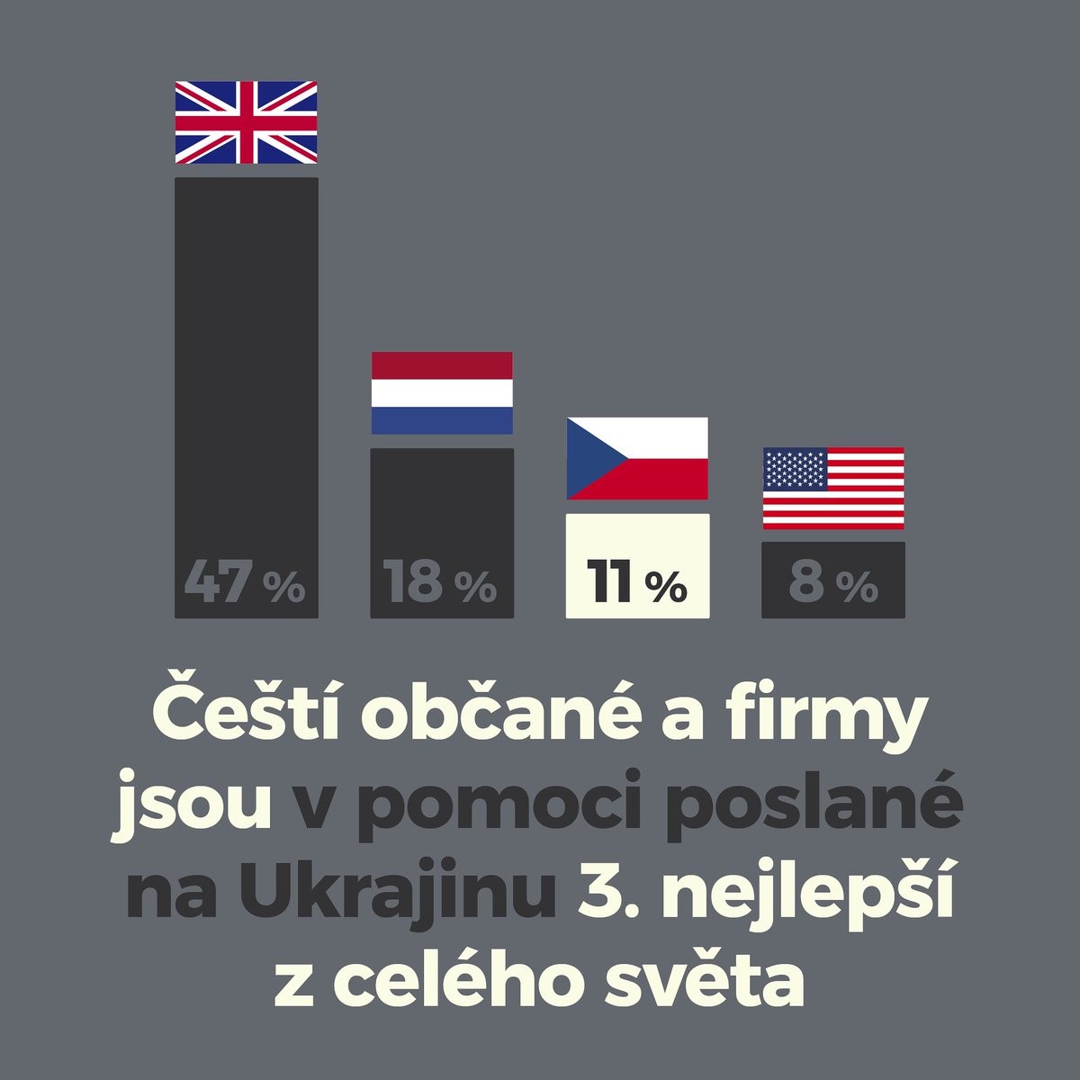 Charitativní pomoc přijatá Ukrajinou od občanů a korporací z celého světa dosáhla již téměř 924 milionů $. Nejvíce prostředků dosud pocházelo od filantropů z UK (47 %), Nizozemska (téměř 18 %), České republiky (11 %) a USA (téměř 8 %).