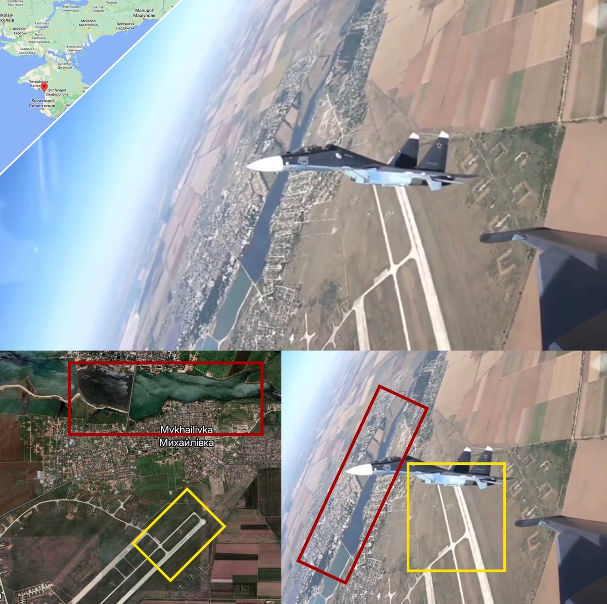 Two of the Russian Su-30s in this video were flying over Saki Naval Air Station (Novofedorivka) in Crimea (45.094, 33.609). https://twitter.com/RALee85/status/1534800518614335489