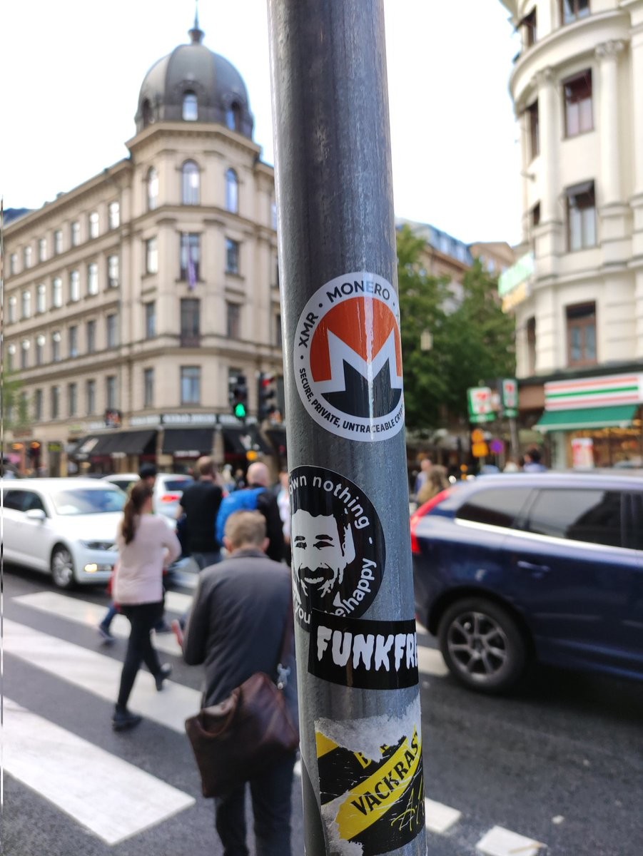 The stickers are being put like crazy in Stockholm. Not just randomly in the downtown but on bus stations, in the metro, light posts on bike paths...