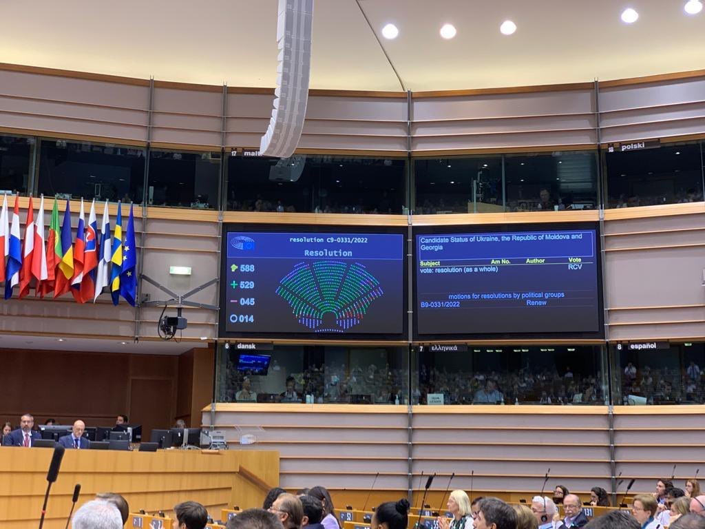 The European Parliament overwhelmingly approves candidate status for Ukraine & Moldova as members for EU.