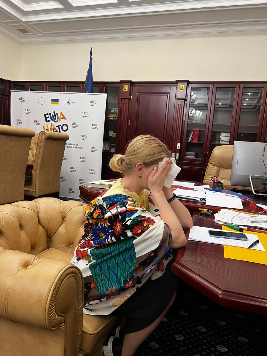 An emotional photo of Ukrainian Deputy Prime Minister Olha Stefanishyna, who had been campaigning hard for Ukraine's candidate status.