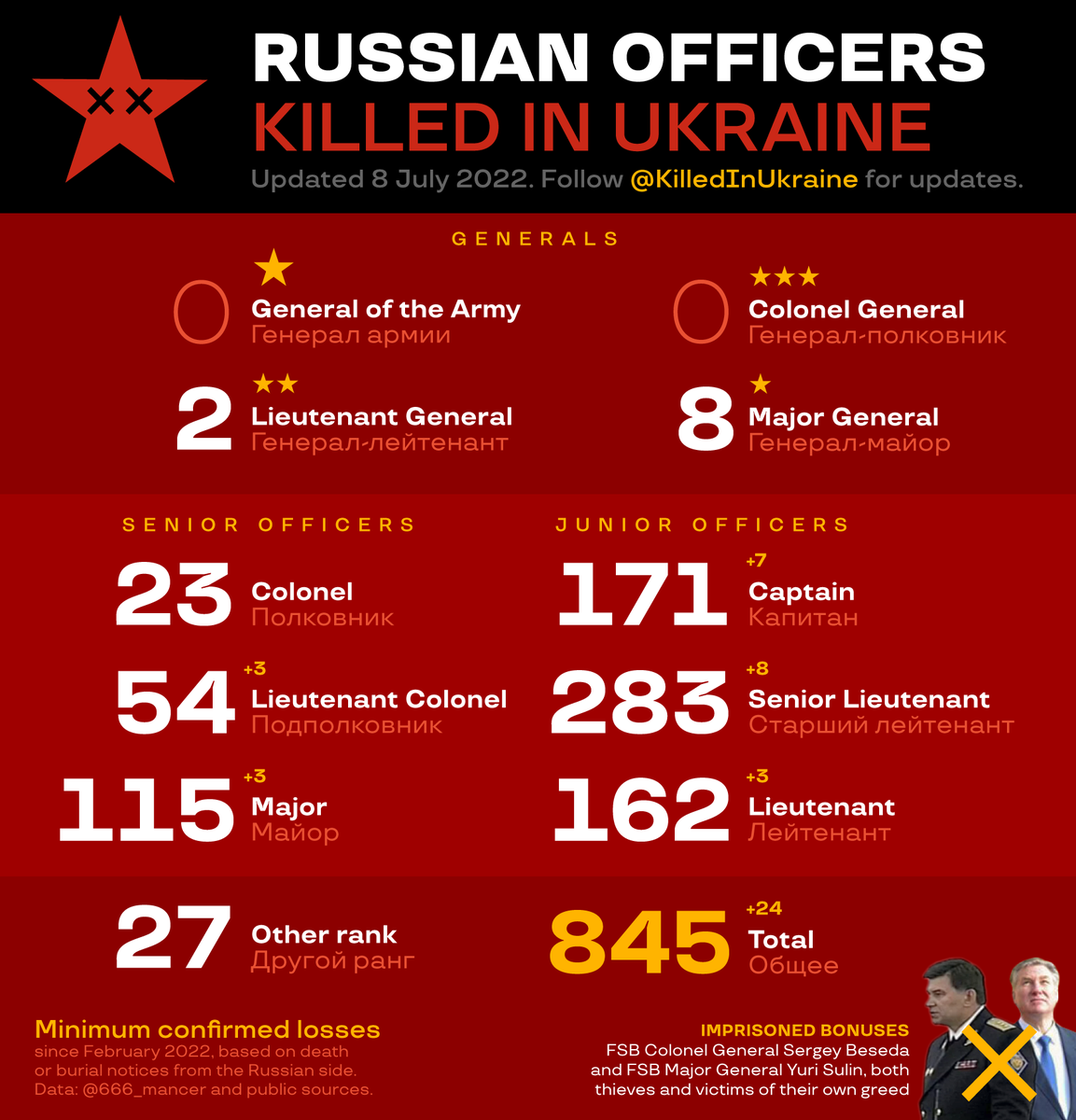 Ztráty ruských vojenských jednotek ve válce proti Ukrajině k 9. červenci 2022.