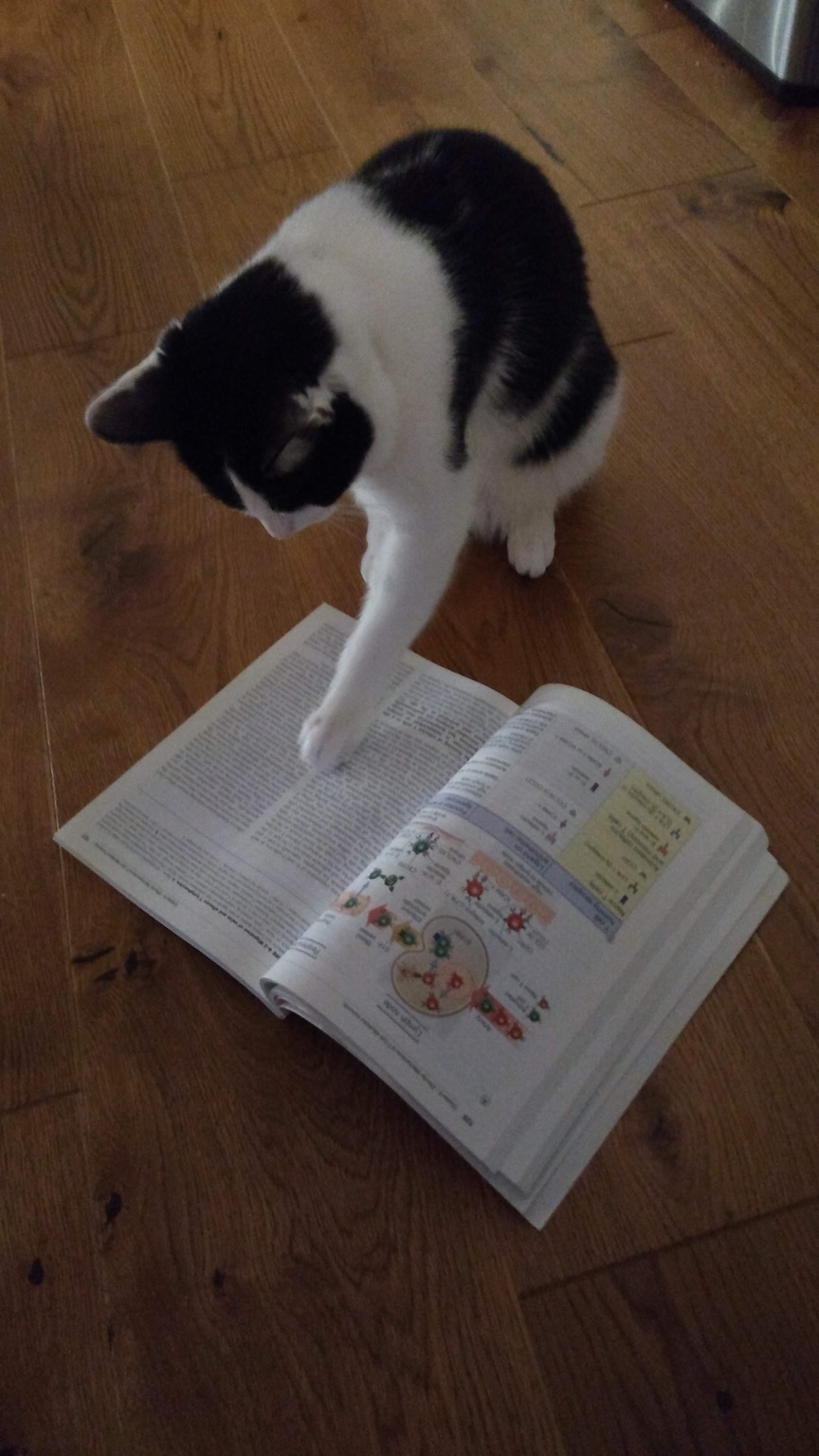 Hello Mastodon, just moved over from twitter. Hopefully this will be a good place to find papers now! Here’s my cat Roy learning immunology to get started #introduction