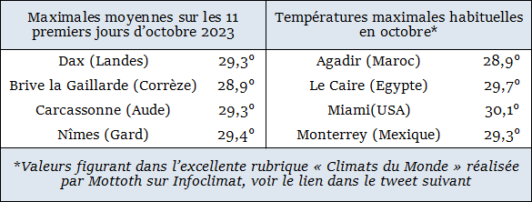 Je dis pas que ce début octobre est chaud. Je dis juste qu'il est économique et écologique, tu profites des climats subtropicaux sur ta terrasse. T'as même les moustiques tigres pour renforcer l'immersion.
