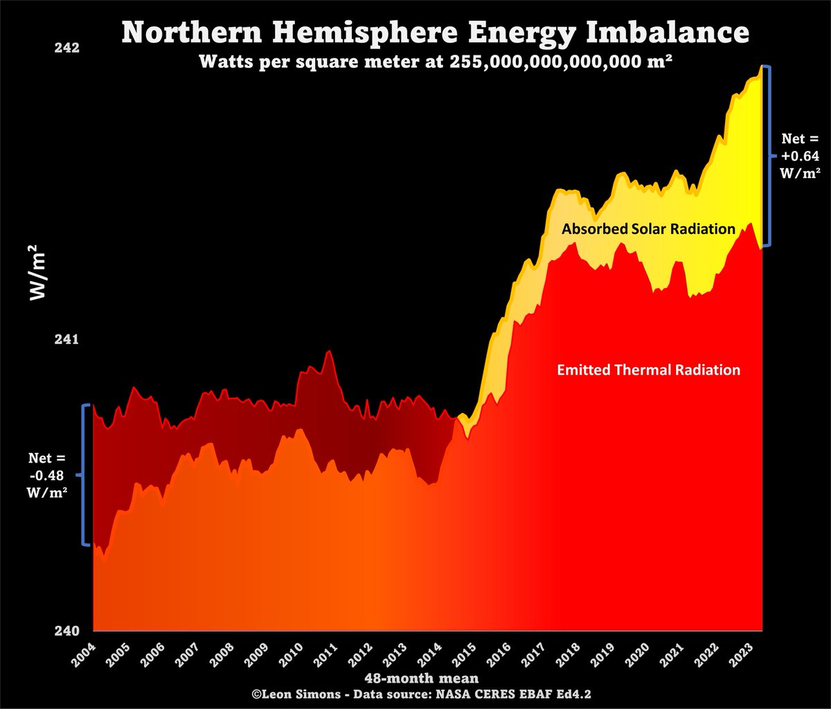 @jeanlafourchex Sinon dans le monde réel, plus il fait chaud, plus l'albedo baisse, et plus la Terre absorbe davantage de rayonnement qu'elle en réémet. On le paye déjà en augmentant le déséquilibre...