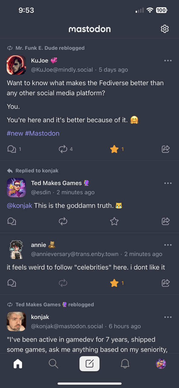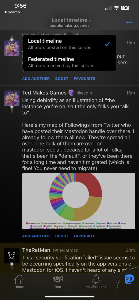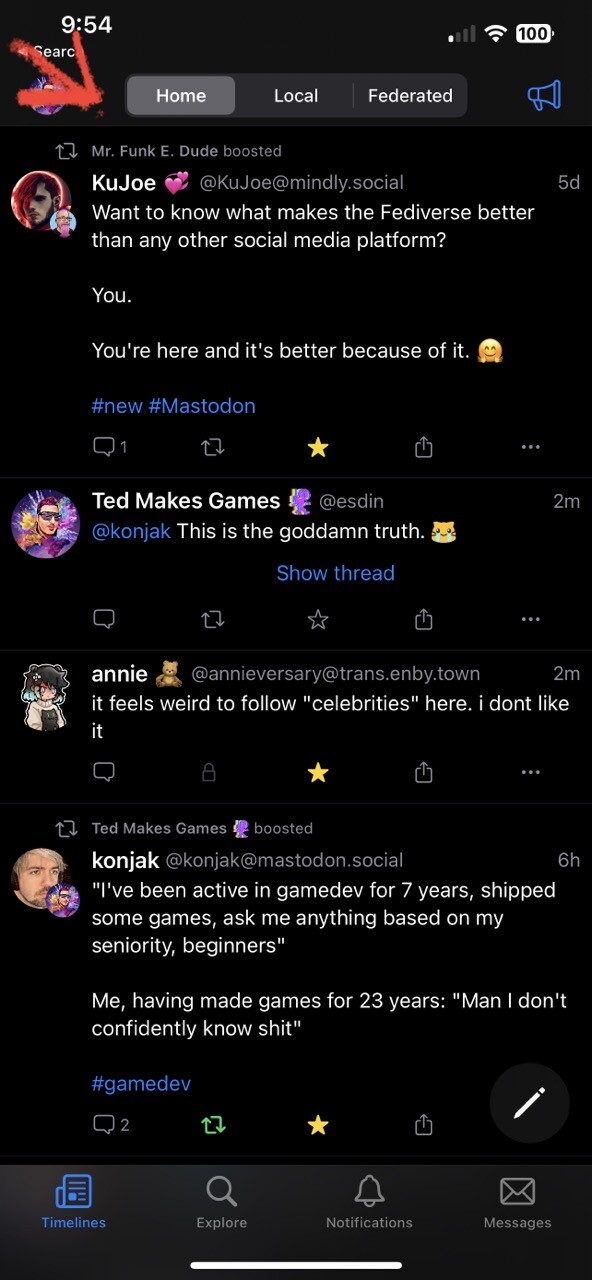 This is actually really bad? They hide it under the search icon, then “Community”. Part of the magic of Mastodon, is you get three major types of social interaction in one - the curated Home, the small community Local, and the big community Federated. The Official App breaks the magic.