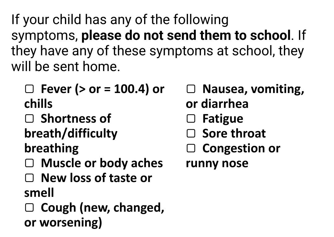 Just got a text from Link's school saying that kids will be sent home if they have ANY OF THE FOLLOWING symptoms, which uh. Seriously, just a runny nose? Are there any kids whose noses DON'T run all the time? 😵💫