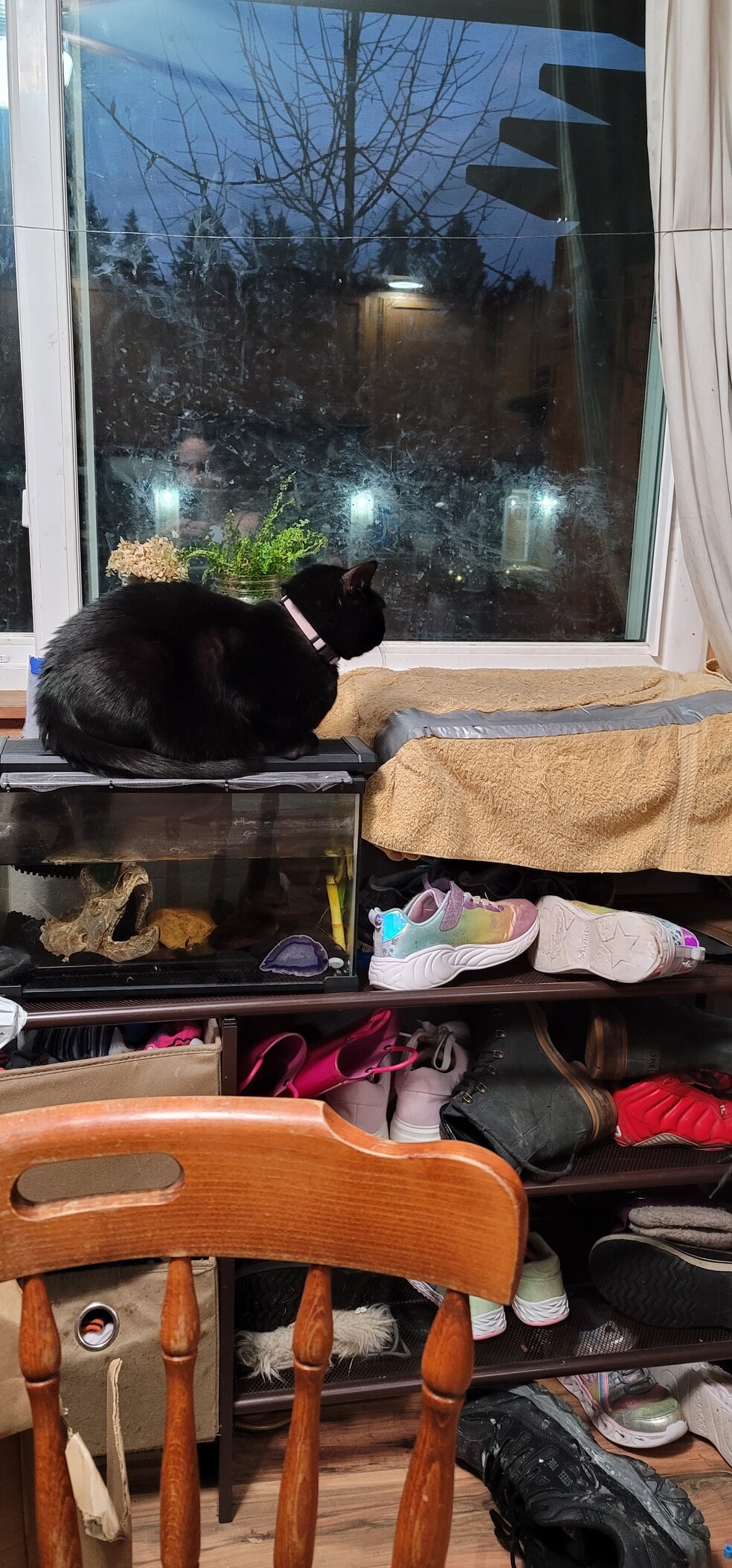 Yes of course why sleep on your nice soft towel when you could sit on top of the fish tank 😑