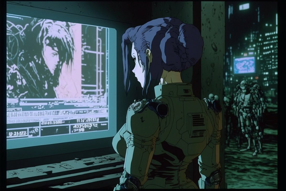 “scene from the 1995 adult animated neo-noir cyberpunk thriller film Ghost in the Shell, 35mm colour” #midjourney #AIArt