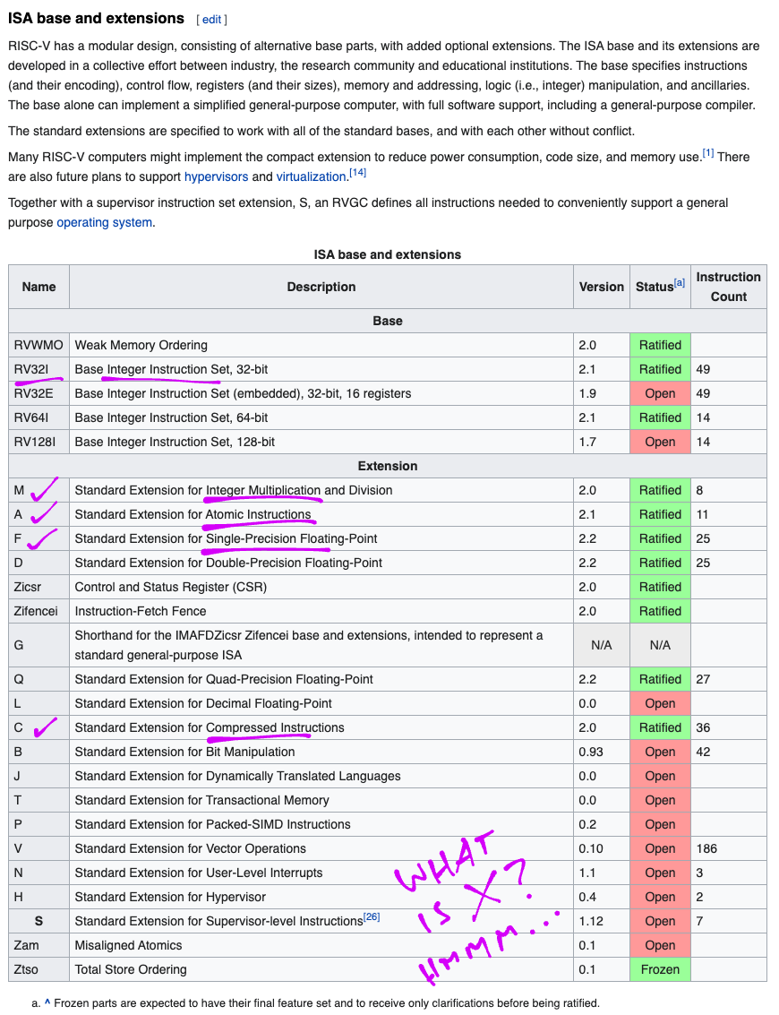 Why is #BL602 designated RV32-IMACFX ? Here's the #RISCV alphabet soup...